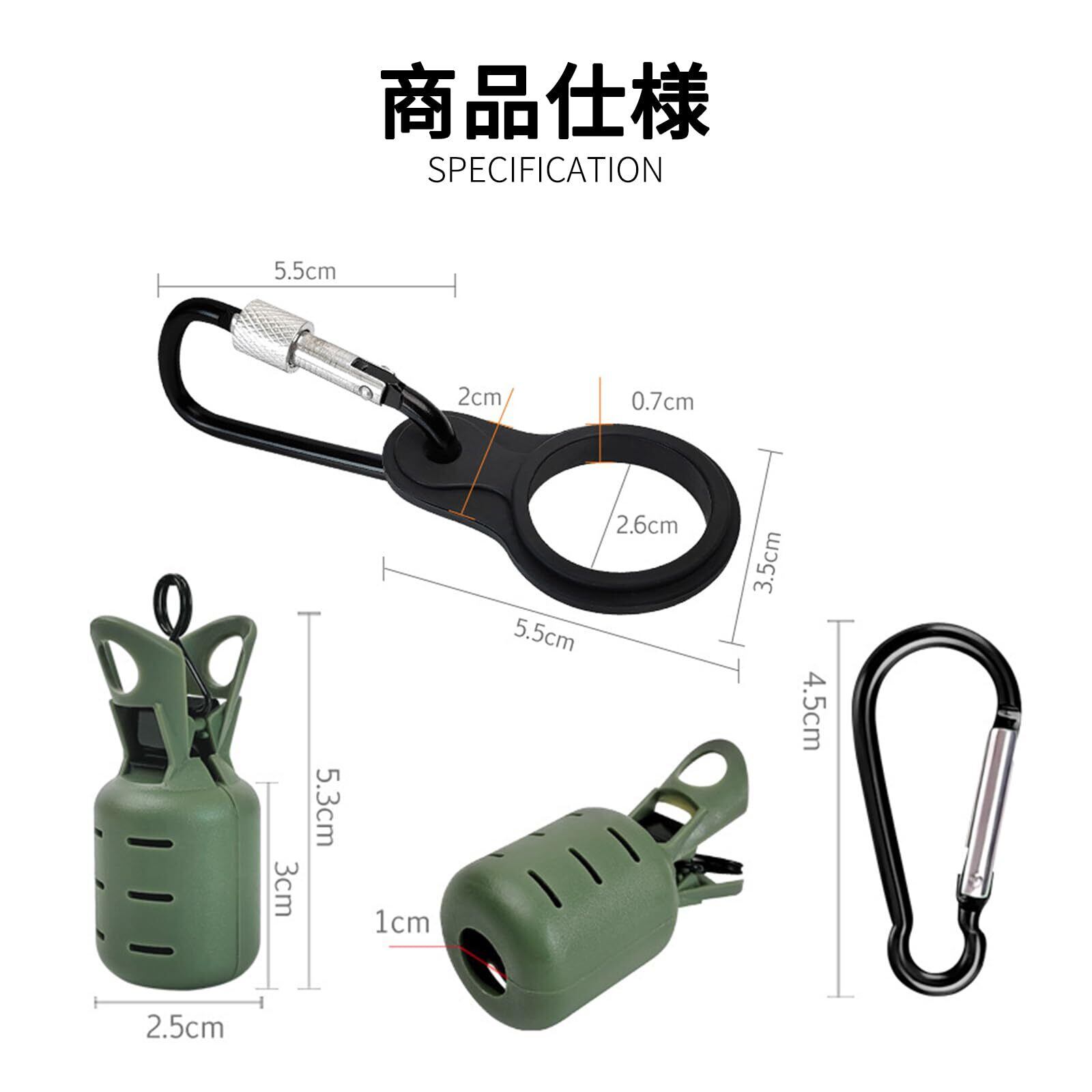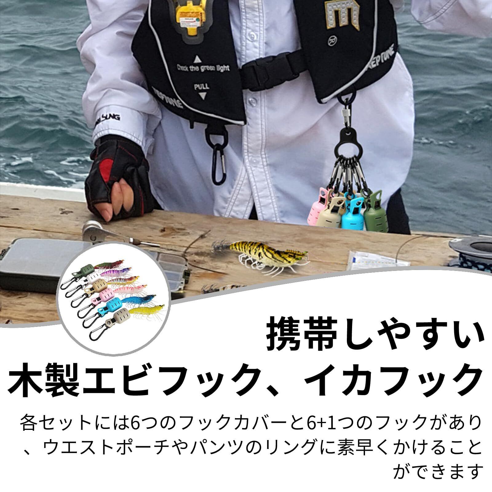 【セット内容】フックカバー×6、カラビナ×7、シリコンバックル×1。フックカバーサイズ:53㎜×25㎜ 。さまざまなサイズのウッドシュリンプ (2.5#、3.0#、3.5#、4.0#) や布ロールに適しており。