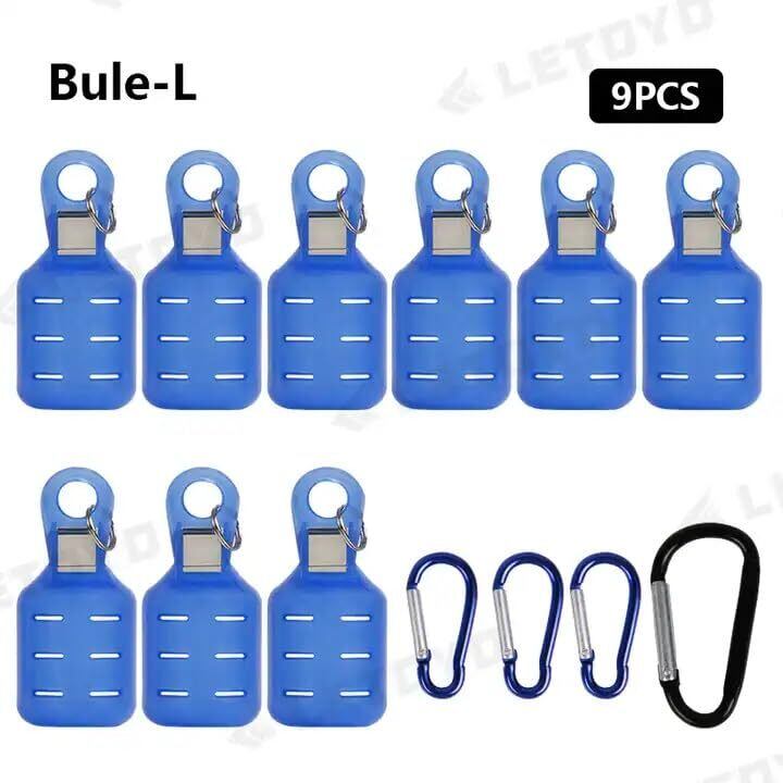 エギカバー エギホルダー 9個セット カラビナ付き ブルー Lサイズ 3.0~4号 エギング ケース つまんで簡単 アオリイカ ヤリイカ 安全カバー 保護カバー 刺さり防止 コウイカ シリヤケイカ モンゴウイカ タコ エギパックン 餌木 スルメイカ マイカ ランガンに フックカバー