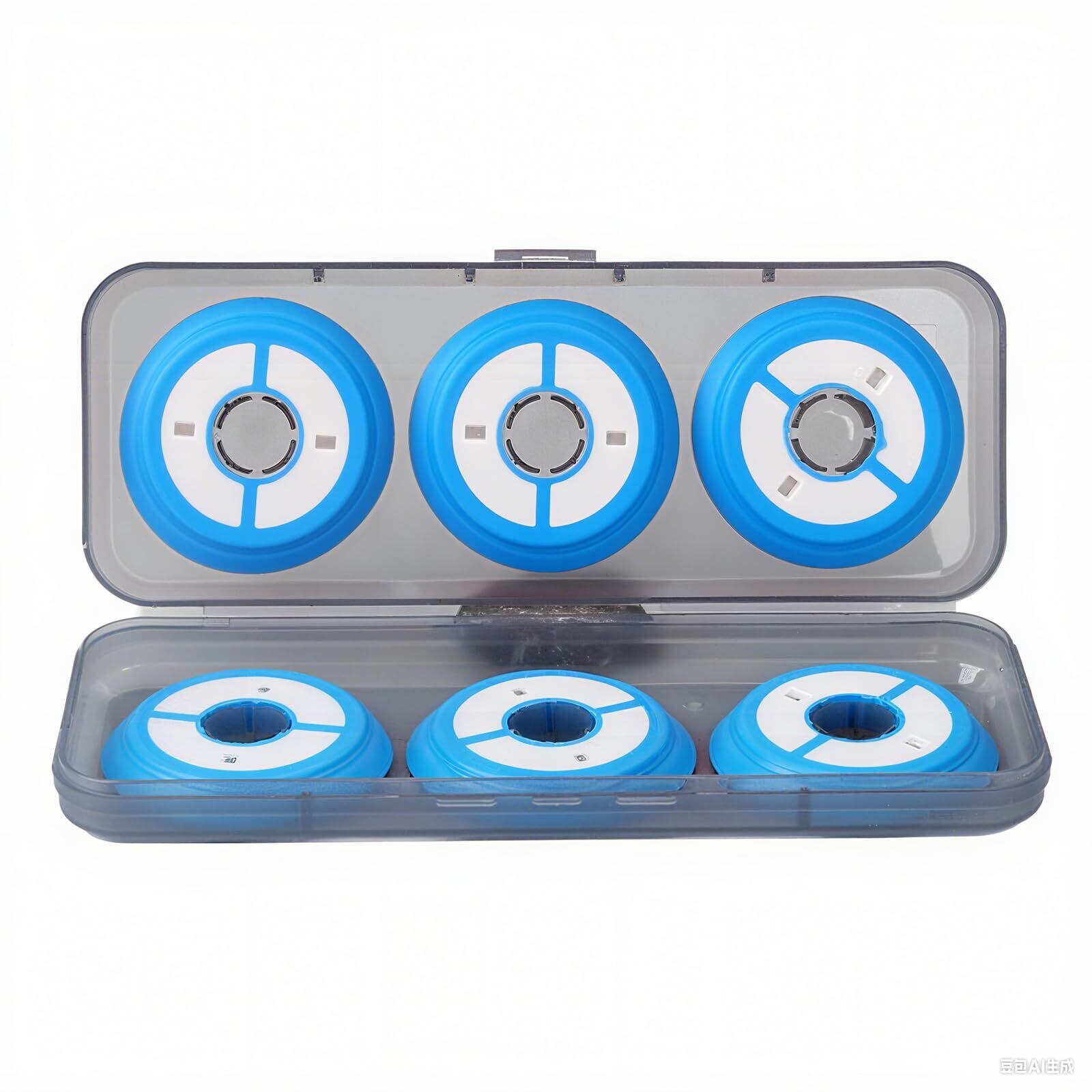 仕掛け巻き6個セット。サイズ:仕掛け巻き:直径6cm、穴径2 cm、厚さ1 cm。収納ケース:長さ20cm、幅7.5cm、高さ2.5cm。※仕掛け巻きの色はランダムです。