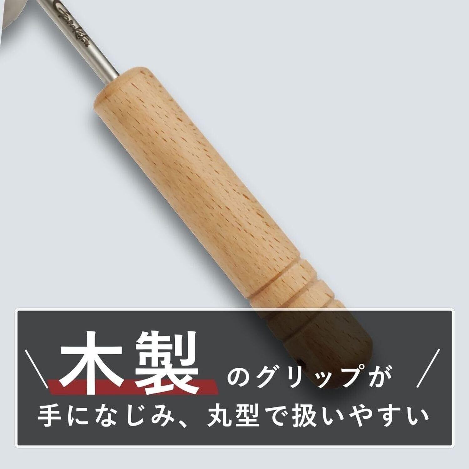 木製グリップはしっとりと手になじみ、持ちやすく操作性に優れた丸形を採用しました。