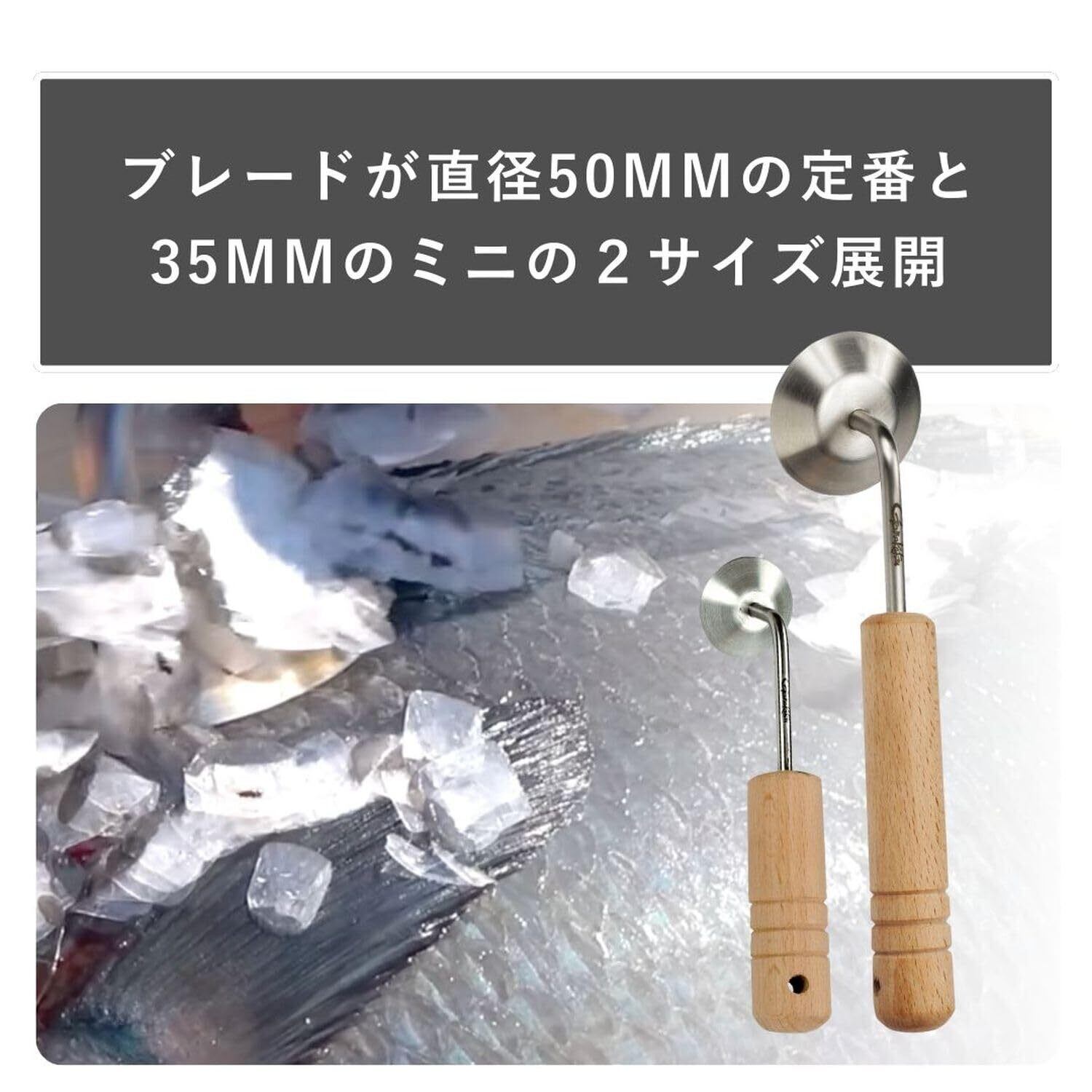 うろこの飛び散りを防ぎ、全方向対応可能な円形ブレード設計。