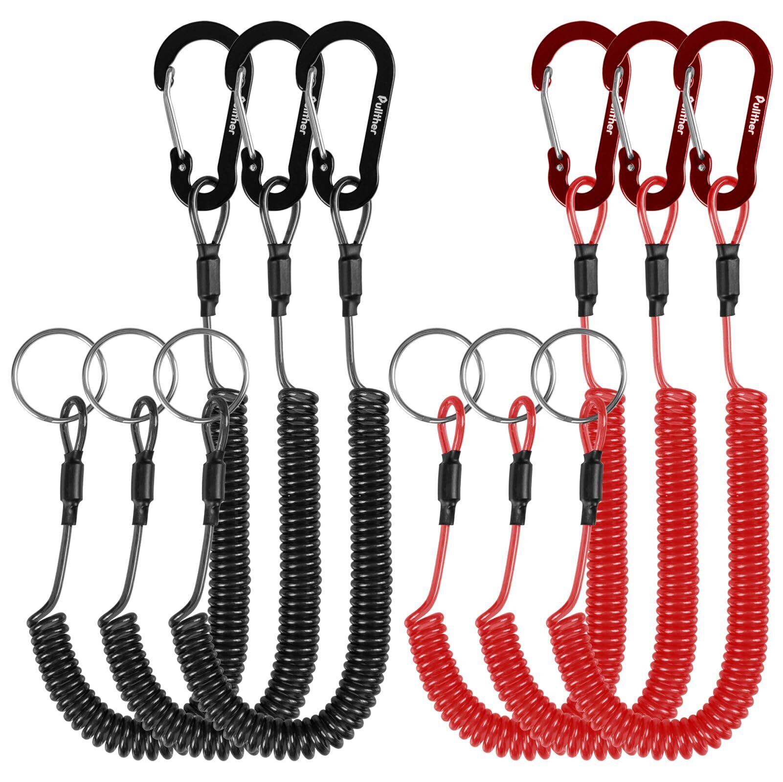 コイルストラップ 落下防止コード スパイラルコード 伸び1.5m 尻手ロープ ワイヤー入り キーストラップ 落下防止 汎用 6個セット