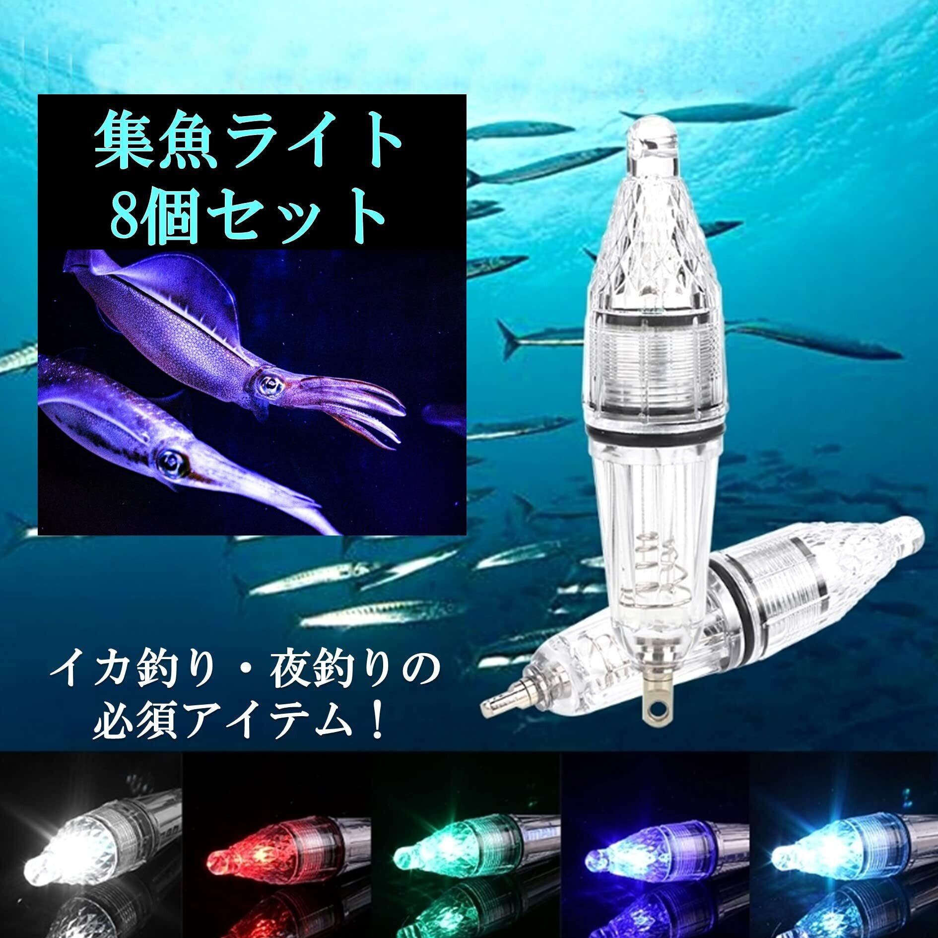 水中ライト 釣り 集魚灯 8個セット LED イカ ライト 水中 夜釣り 海釣り 集魚ライト 釣具 乾電池式