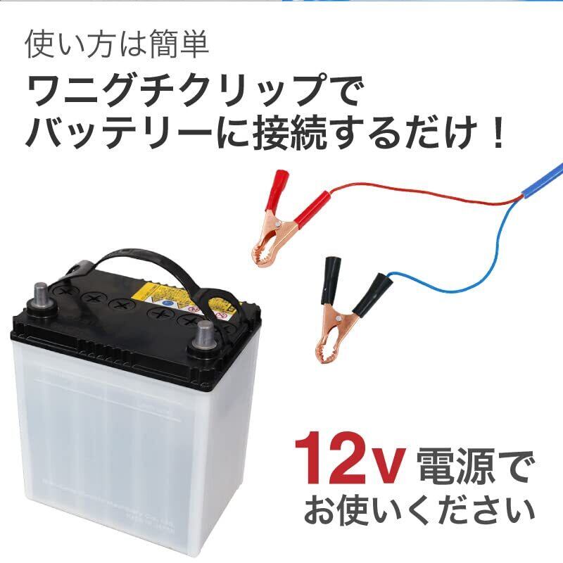 ワニグチクリップでバッテリーに接続してお使いいただけます。