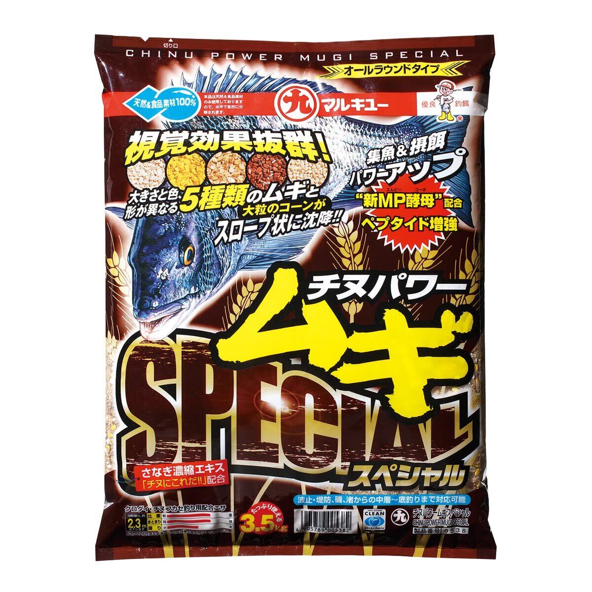 5種類のムギと大粒コーンで 視覚効果が抜群! 色や大きさ、形の違う5種類のムギと大粒コーンが異なる速さで沈み、視覚へ強烈にアピール。集魚・摂餌力の高い"新MP酵母"と、さなぎエキスを濃縮した「チヌにこれだ!!」も配合、魚を素早く寄せて長く留めます。足元から沖目、中層から底釣りまで対応するオールラウンドタイプです。