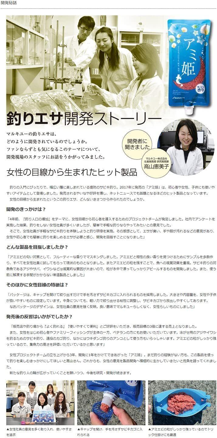 従来の【アミ姫】と同様に粒がしっかりしたアミエビが水中でフワフワッと漂ってターゲットに猛アピール。
