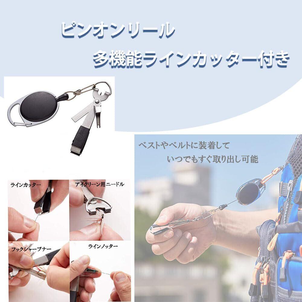 ●バッグに取り付けることが出来る、ピンオンリール ラインカッター付き。 ●バッグの外側に簡単に取り付けられ、ラインのカットがスムーズに行えるため、釣りの合間に手軽に対応可能。