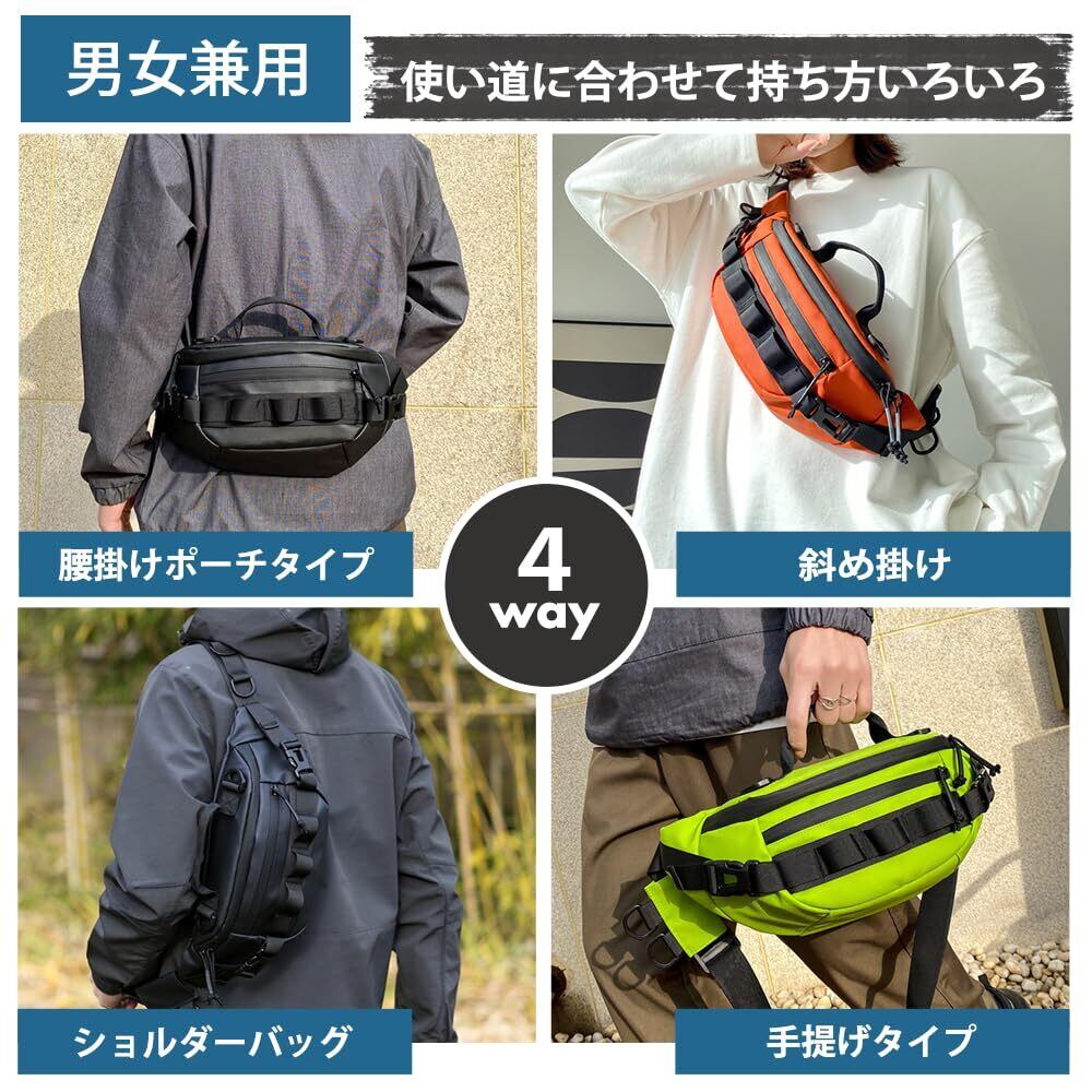 ●4WAY多機能デザイン:ウエストバッグ、ショルダーバッグ、斜め掛けバッグ、ランニングポーチとして使用可能。 ●調整可能なベルト:ベルトは34cm〜113cmまで調整可能で、様々な体型にフィットし、快適な装着感を実現。