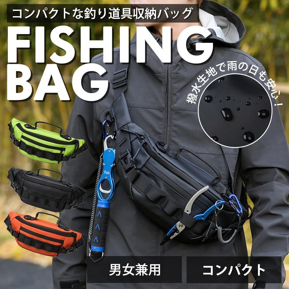 フィッシングバッグ エギングバッグ 渓流釣り フライフィッシング 船釣り オフショアジギング ボディバッグ ヒップバッグ コンパクト 小さめ 防水 登山 サイクリング ツーリング 男女兼用 3カラー (ブラック)