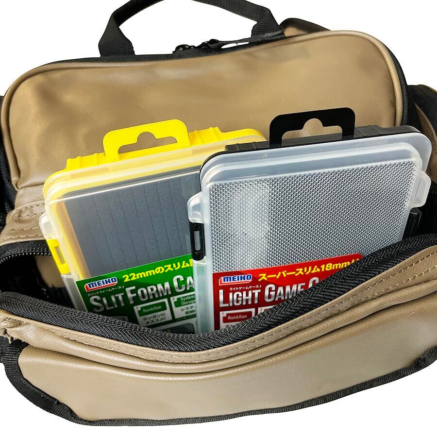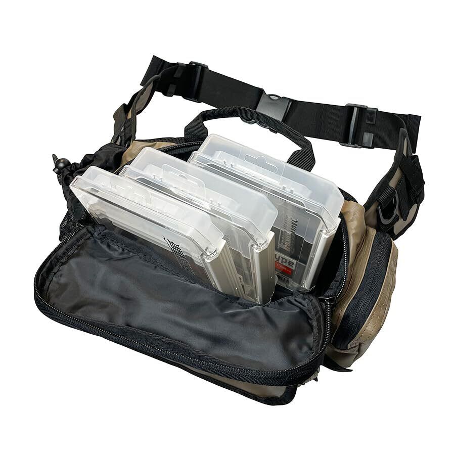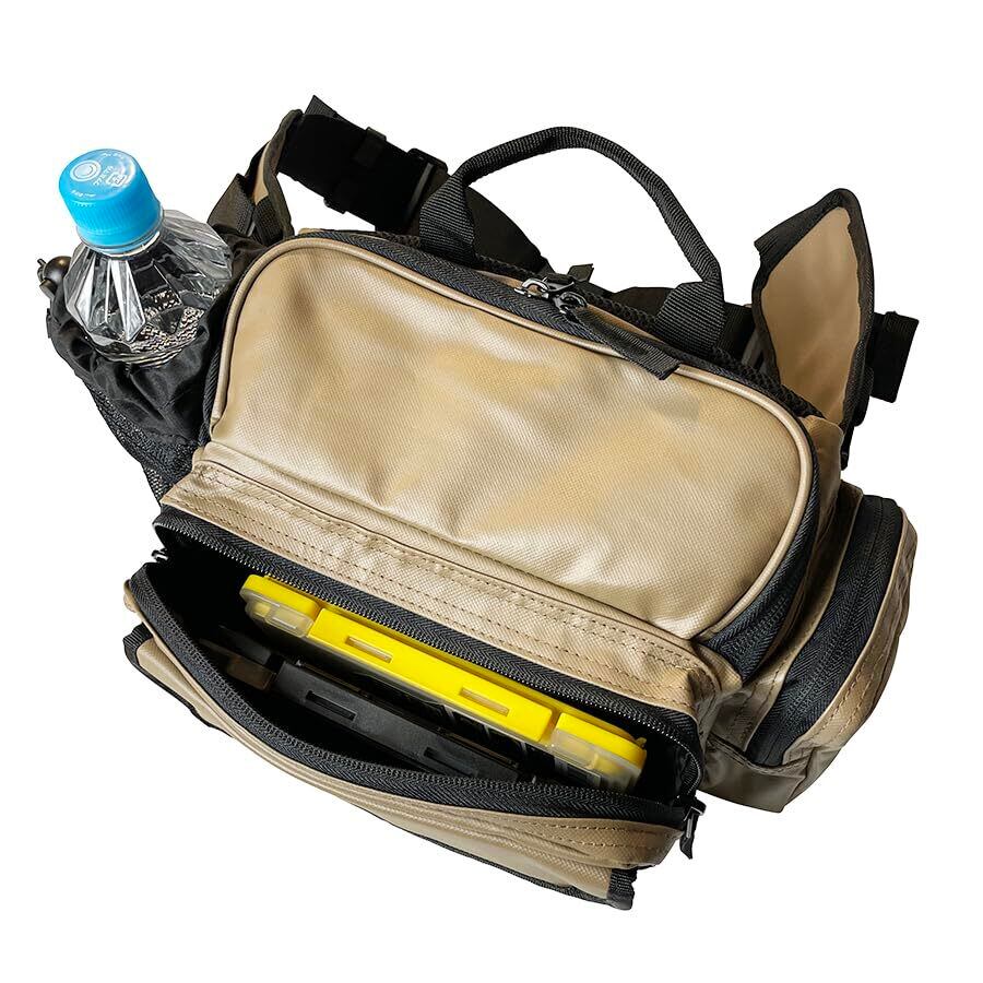 コンパクトなのに収納力抜群のランガンヒップバッグ。表面生地にはターポリン素材を使用し撥水性を高めました。右サイド、フロントには、さらに収納力を高めるポケットを配置、左サイドにはペットボトルホルダー、ベルト部にはプライヤーホルダー、D環を配置。自分のスタイルに合ったレイアウトを楽しめます。
