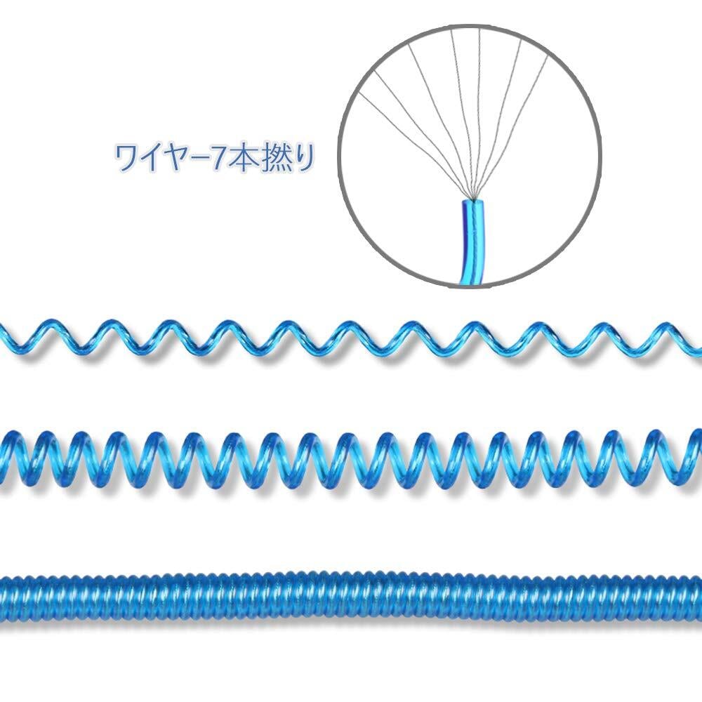 スパイラルコード:ステンレスワイヤー入りで安心強度、ナスカン付きで取り付け簡単