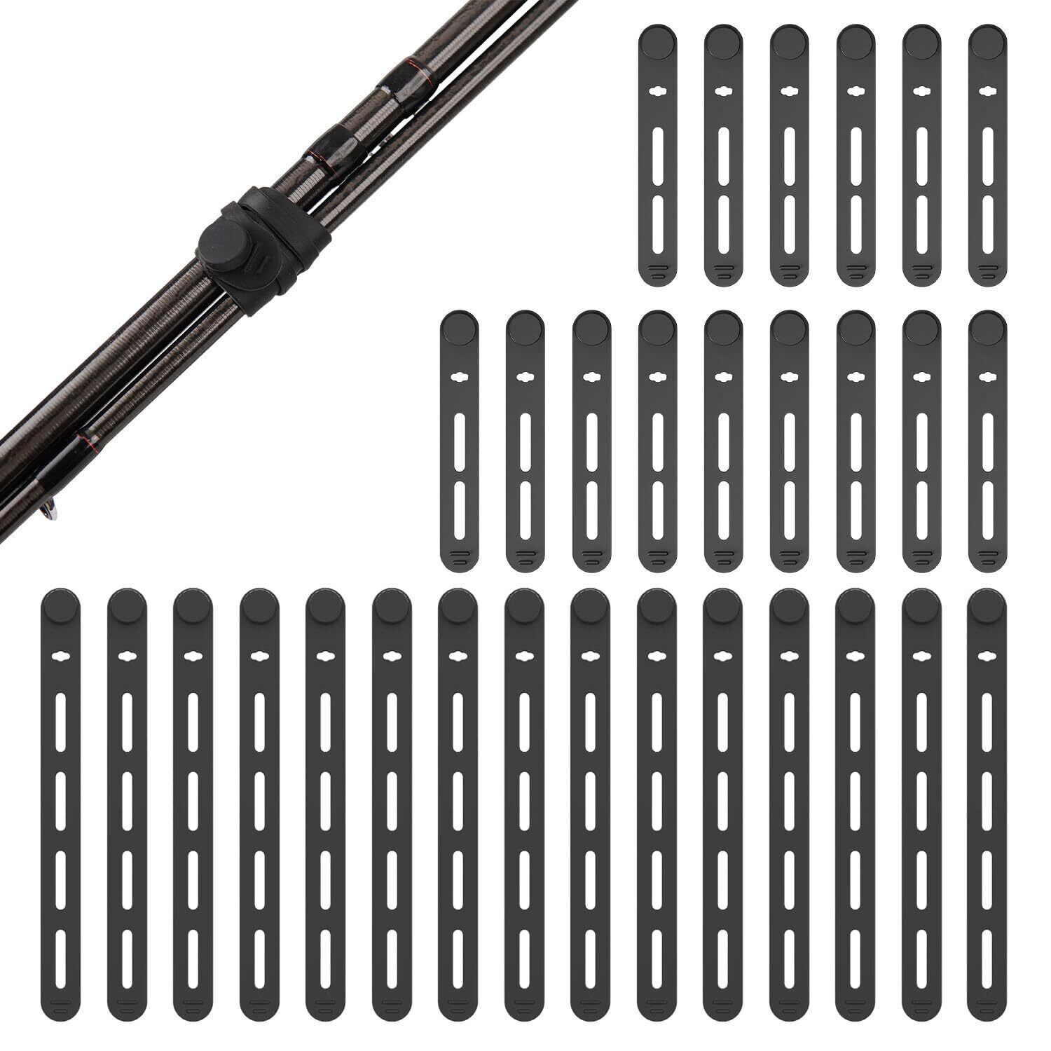 釣り竿を安全に保管・収納するための革新的なシリコンバンド30本セットです。 高弾性で耐久性のあるシリコン素材を使用し、竿に傷をつけることなく、しっかりと固定できます。 各バンドは元の長さ12.7cm(5インチ)から約50.8cm(20インチ)まで伸縮可能で、様々な太さの竿に対応します。 軽量で使いやすく、コンパクトに収納できるため、釣行時の持ち運びにも便利です。 バンドの伸縮性が高く、竿を傷つけることなく確実にホールドできるため、高価な釣り竿の保護に最適です。 30本セットなので、複数の竿の収納や、予備として保管しておくことができます。 釣り具の整理整頓に欠かせないアイテムとして、プロからアマチュアまで幅広い釣り人におすすめです。
