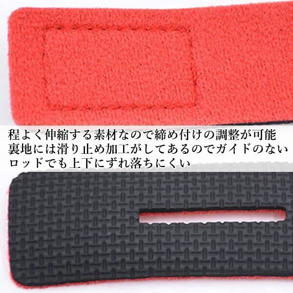 ・ 大切なロッドを守るために持っておきたい魚釣り道具の1つです。 ・スリットにロッドのガイドを通して巻き付ければ装着簡単! 裏地には滑り止め加工がしてあるのでガイドないロッドでも上下にずれ落ちる心配もありません。 そのまま ロッドケース に収納すれば中で動く心配もありません。 ・程よく伸縮する素材なので締め付けの調整ができます。 ・裏地にはクッション素材を使用してあり、大切なロッドを守ります。 【商品仕様】 カラー レッド 6個入り