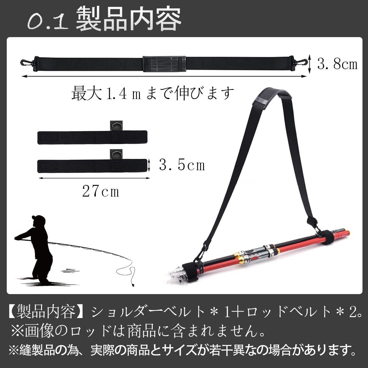 [Subnovty] 釣りショルダーベルト ロッドキャリーベルト 釣り竿キャリー ロッドストラップ 長さ調節可能 ブラック