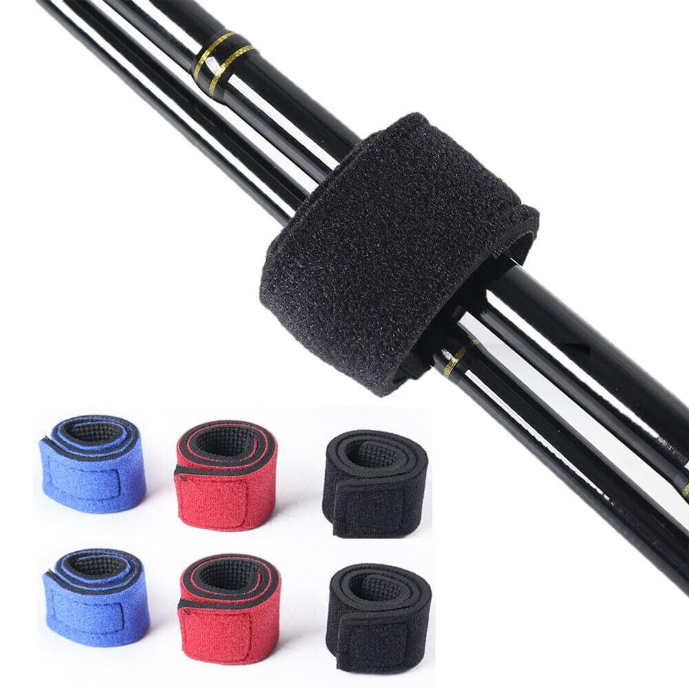 釣竿付き釣竿保護テープマジックテープ保護テープ固定保護テープ滑り止め釣り包帯大部分の釣竿汎用滑り止め固定テープ(黒、赤、青、計6個)