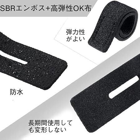 【伸縮性】:弾力性生地を用いて作られ、一定の弾力性があり、使用中に緩さの程度を調節することができる。