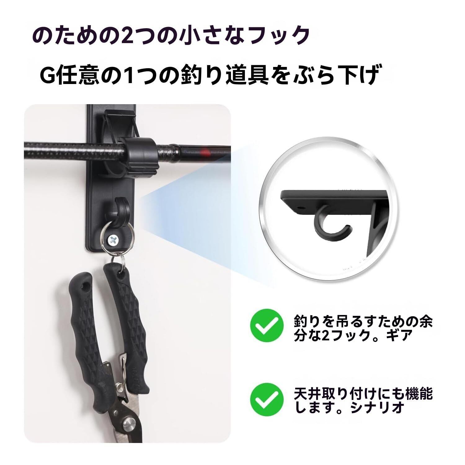 収納能力: 6本の釣竿を垂直に収納できる壁掛け式ラック、スペースを効率的に活用可能