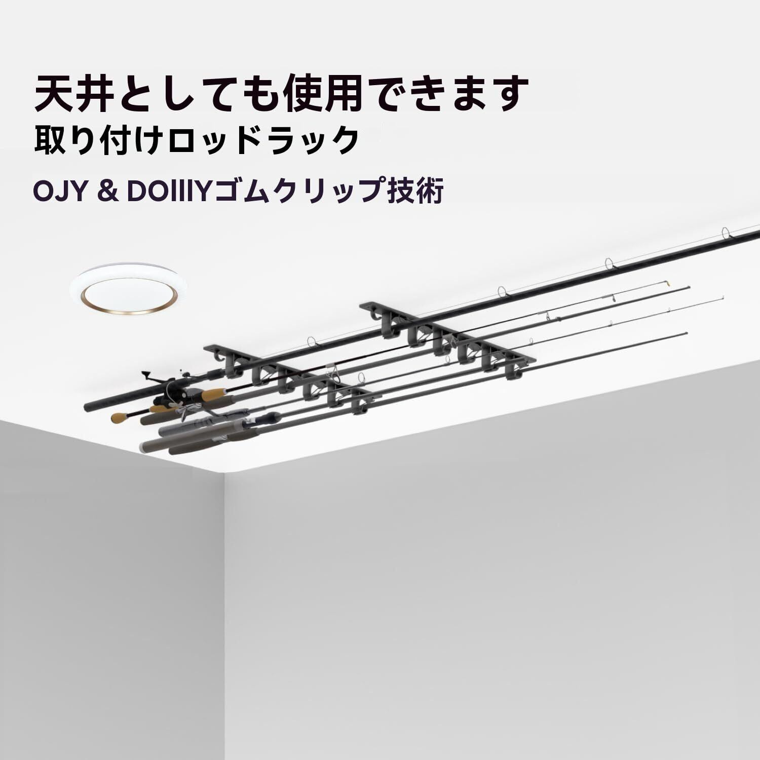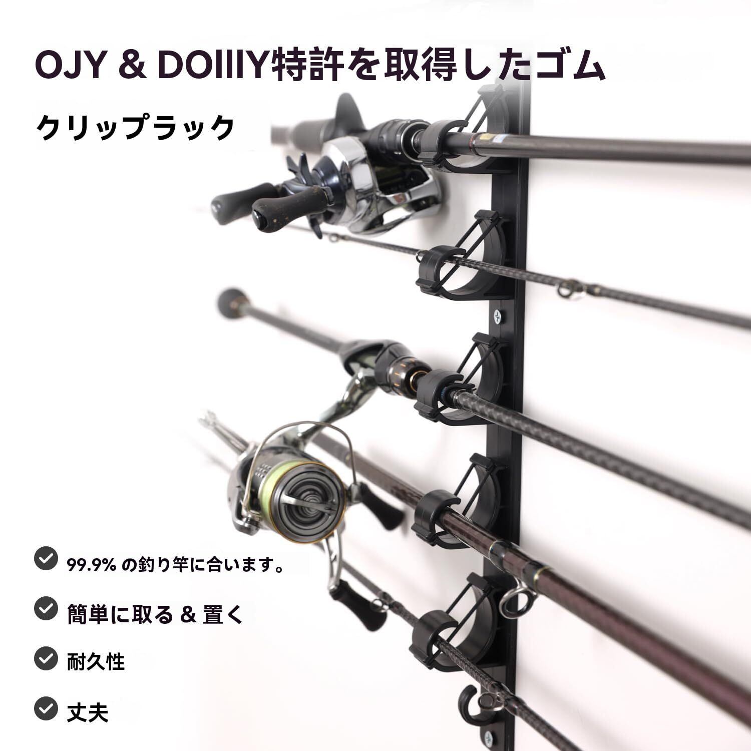 OJY & DOIIIY 壁面取り付け 釣り竿 収納ラック 縦型 ホルダー コンパクト設計 ガレージ/屋内用 (ブラック) (横型ロッドスタンド)