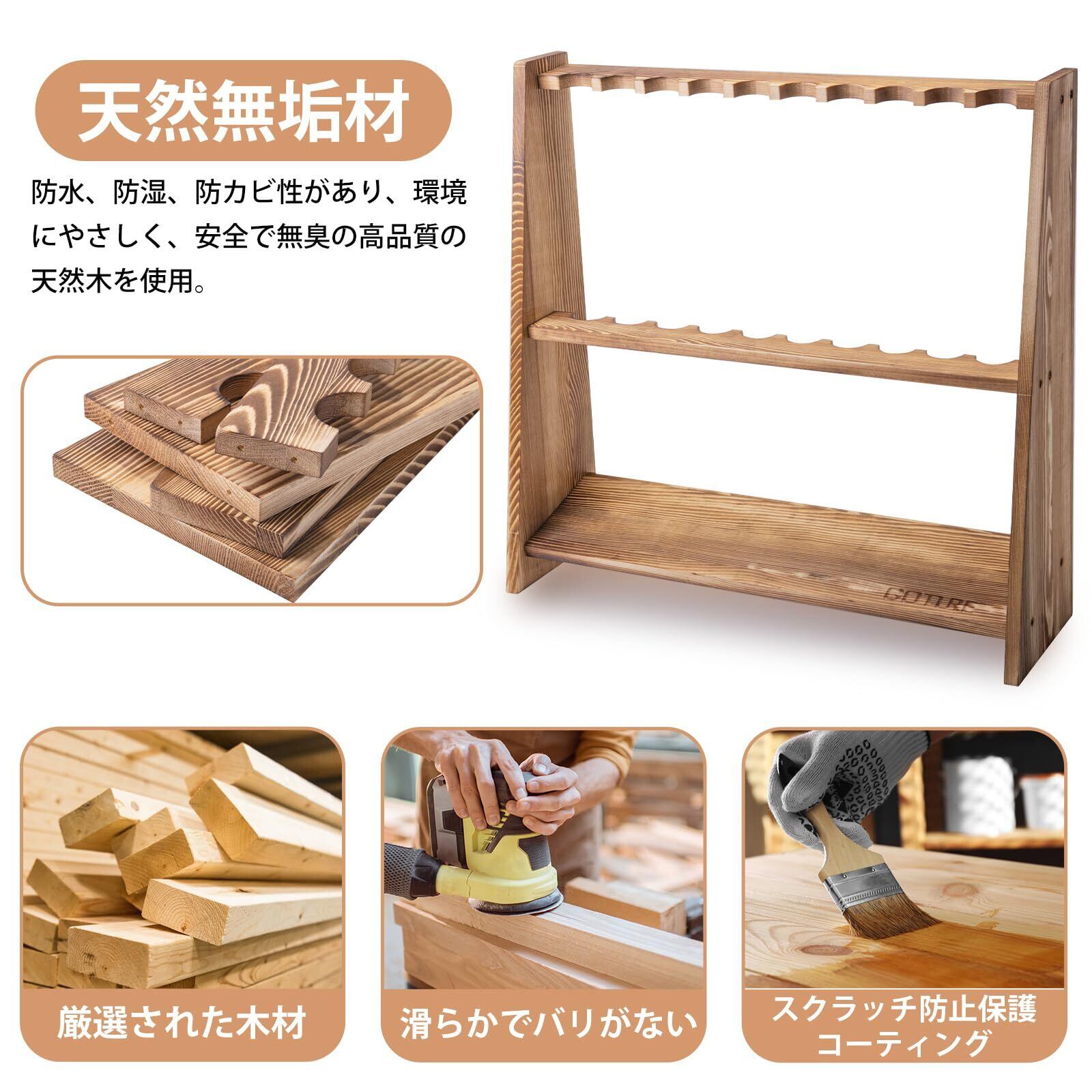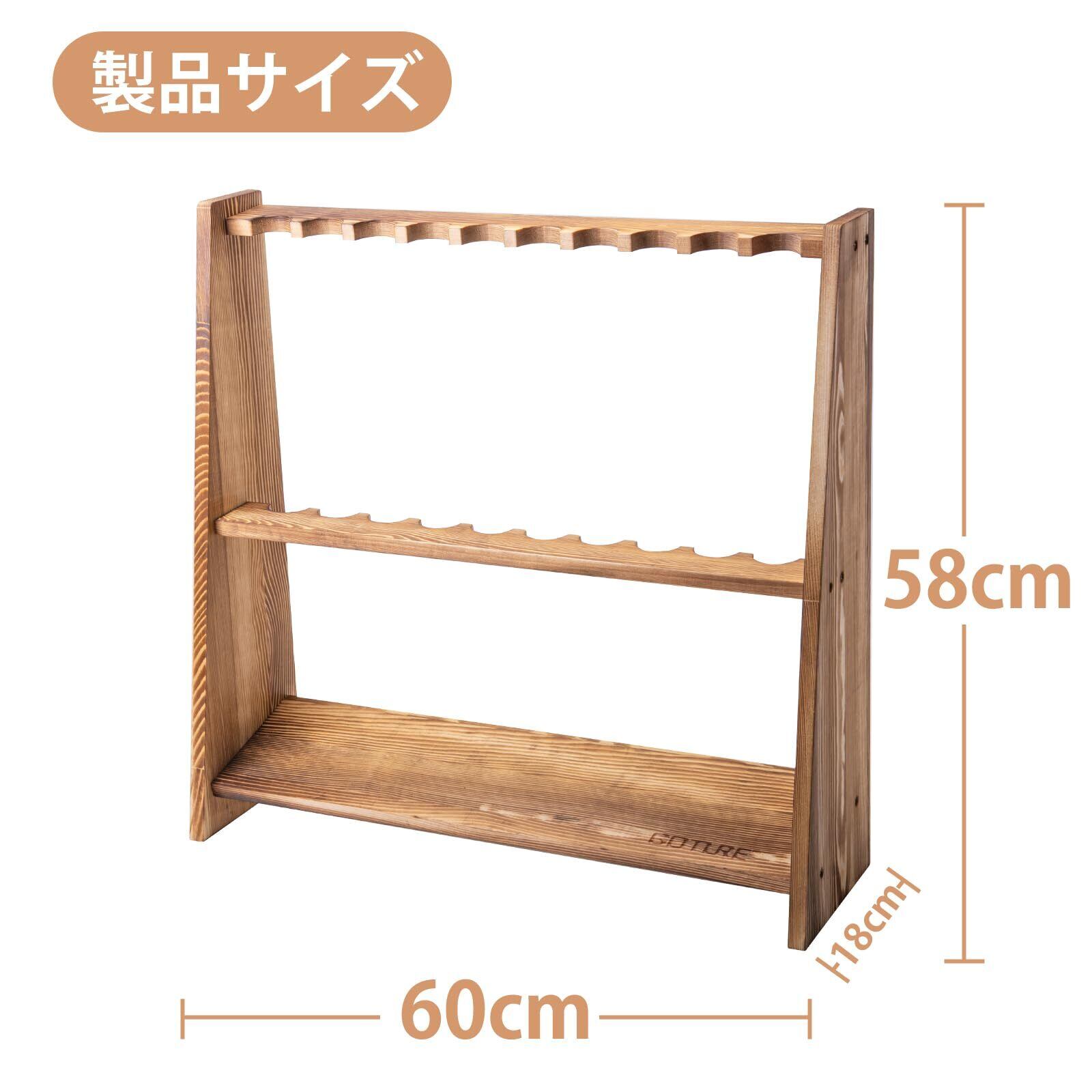 Goture ロッドスタンド 竿スタンド ロッドホルダー 10本立て 組立式 松の炭化 【日本語取扱説明書付き·木製·天然無垢材】 釣竿収納 釣り竿立て 収納 組み立て簡単 鑑賞 各種タイプの釣竿に適用