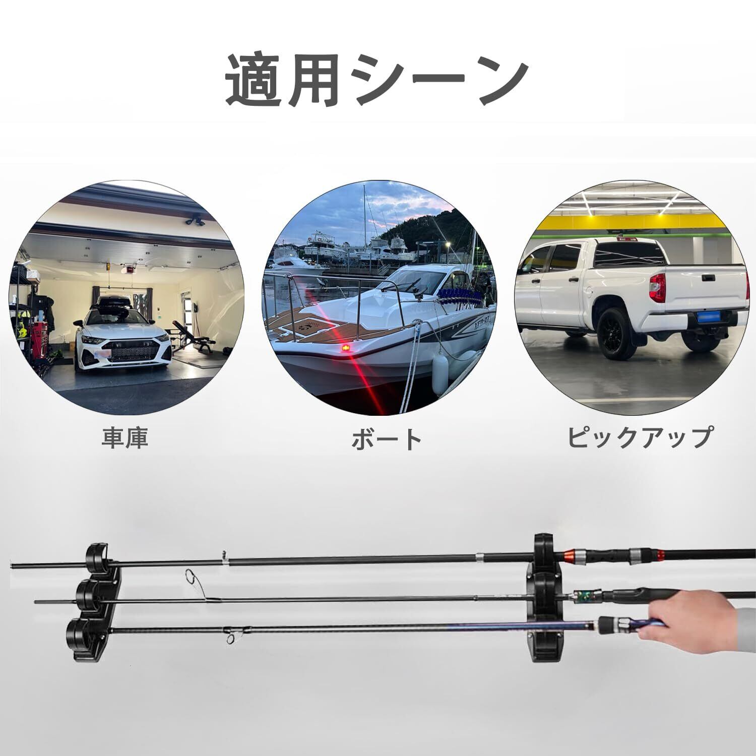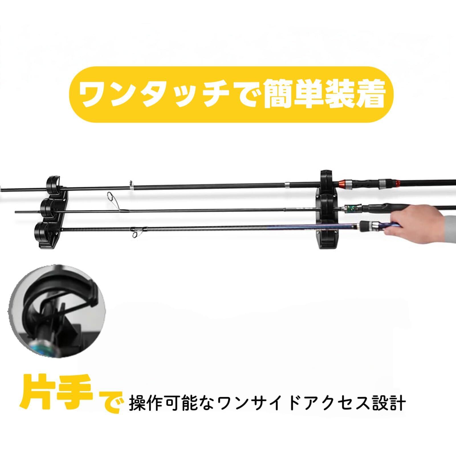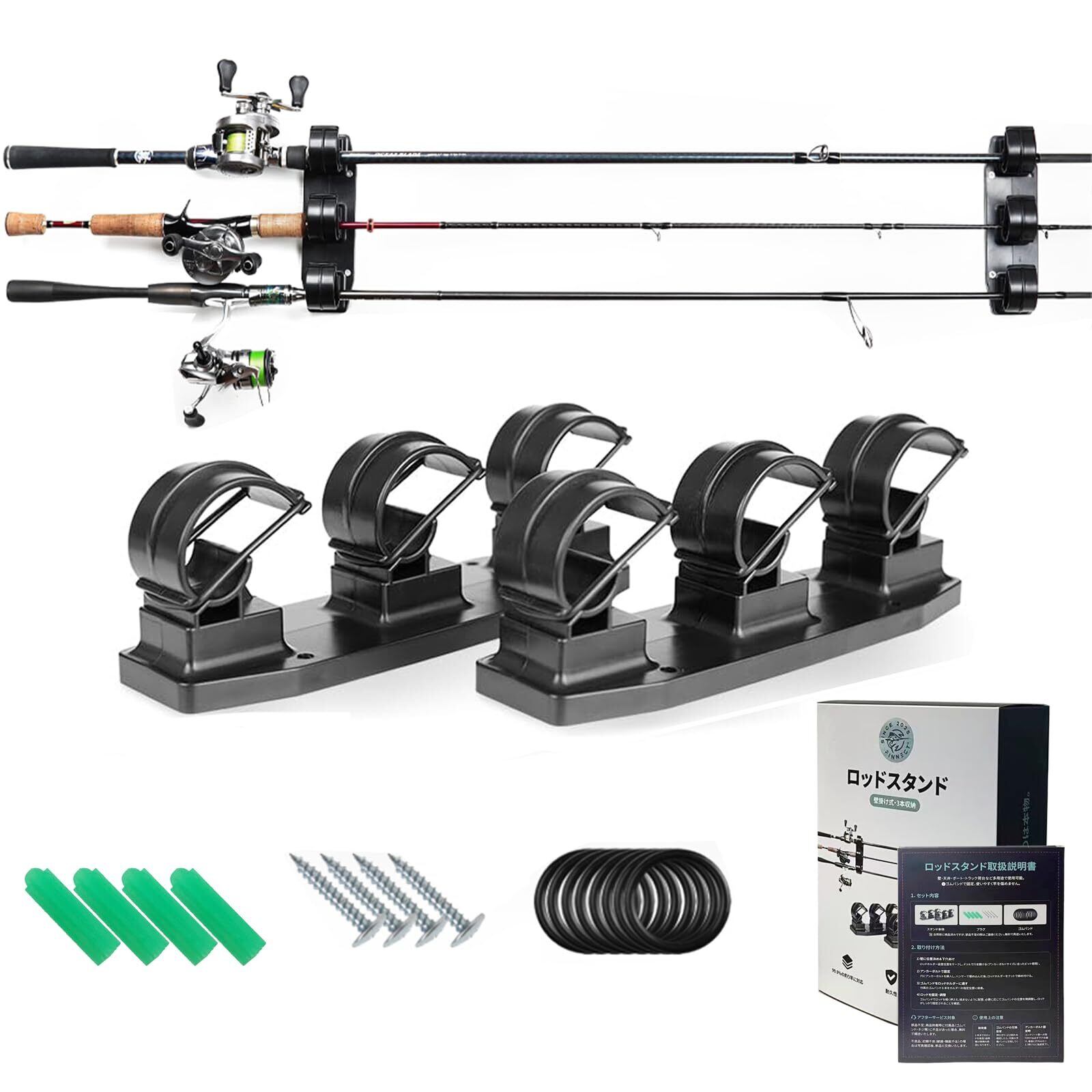 ロッドスタンド 3本 【天井や壁収納可能・日本語取説付き】竿掛け ロッドホルダー 壁掛け式ロッドスタンド 3本立て竿収納 釣り道具収納 ロッド収納 取扱簡単