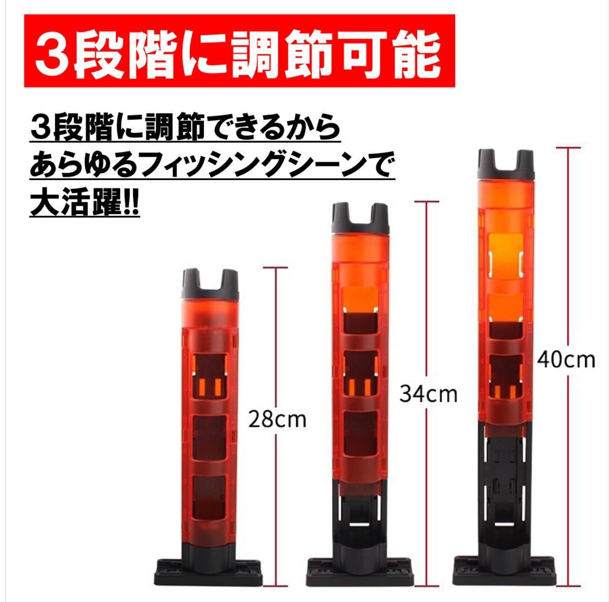 【釣りをより快適に】高さや台座の位置を自由に調整でき、様々なタイプのロッドやタックルボックスに対応した釣り道具として重宝します。軽量で強度の高い素材で作られており、ポータブルロッドスタンドとして持ち運びに便利です。不安定な場所でロッドを置く場所に悩む必要がありません。コンパクトなので釣り場への持ち運びや自宅での保管も楽々。耐久性にも優れているので、過酷なアウトドア環境でも安心して使用できます。タックルボックスへの取り付けやクーラーロッドホルダーとしても最適です。