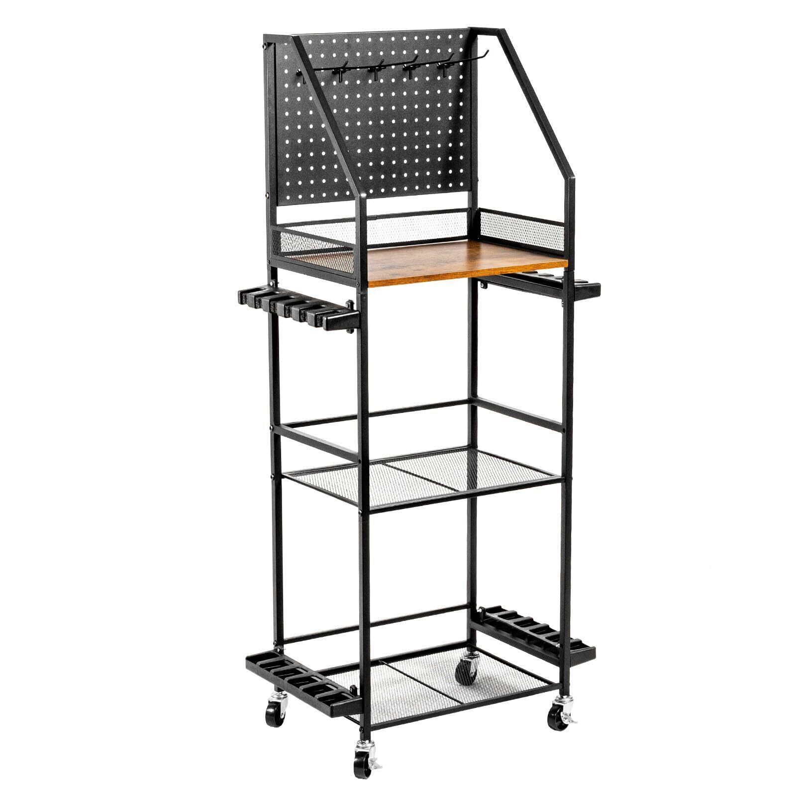 ロッドスタンド 釣り竿立て 釣り具収納 12本用 大容量 ロッドラック 整理 釣竿置き 移動式 ロッドホルダー キャスター付き 移動便利 パンチングボード付き 組立式 屋外・室内両用【釣り具の整理整頓を実現する大容量スタンド!】
