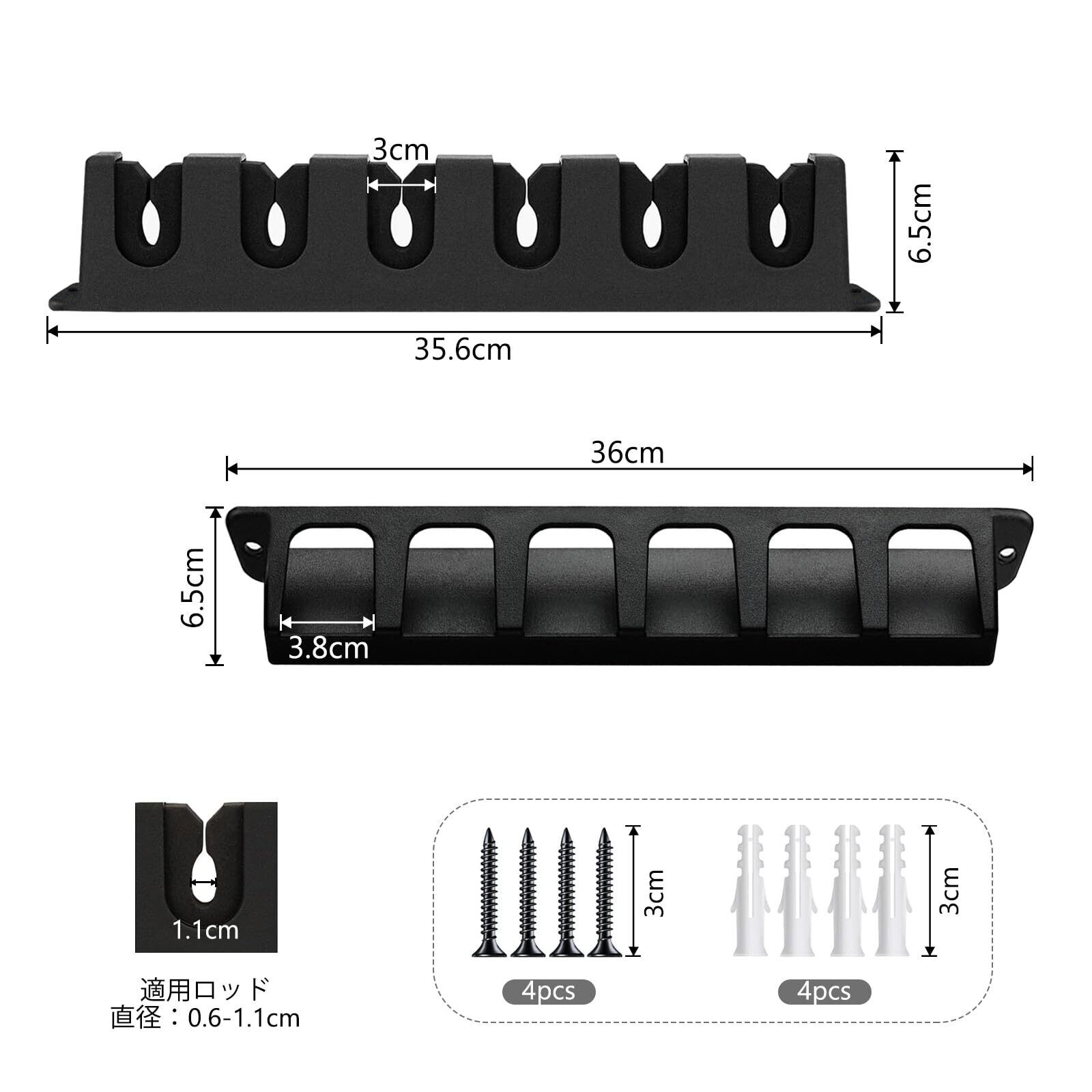 【商品仕様】素材:ABS・EVAフォームグリップ、梱包サイズ:36×8.6×6.6cm 、重量: 約250g ,パッケージ内容:ロッドスタンド×2セット、ネジ×8、拡張チューブ×8。