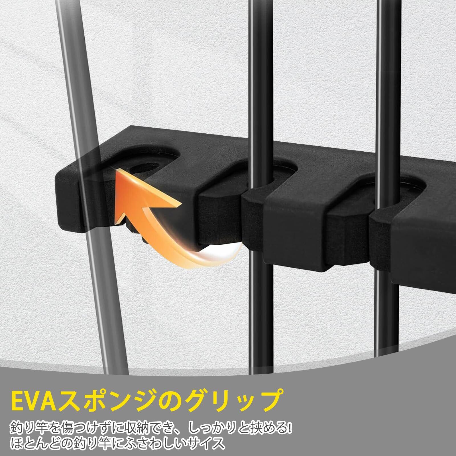 【優れた素材】ホルダー部は優れた耐久性と形状保持力のEVAフォームグリップを使用し、釣り竿をしっかり固定して傷つけない様に保護します。ベース部は高品質高強度のABS素材を使用し、耐熱性と耐衝撃性があり、丈夫で耐久性があります。