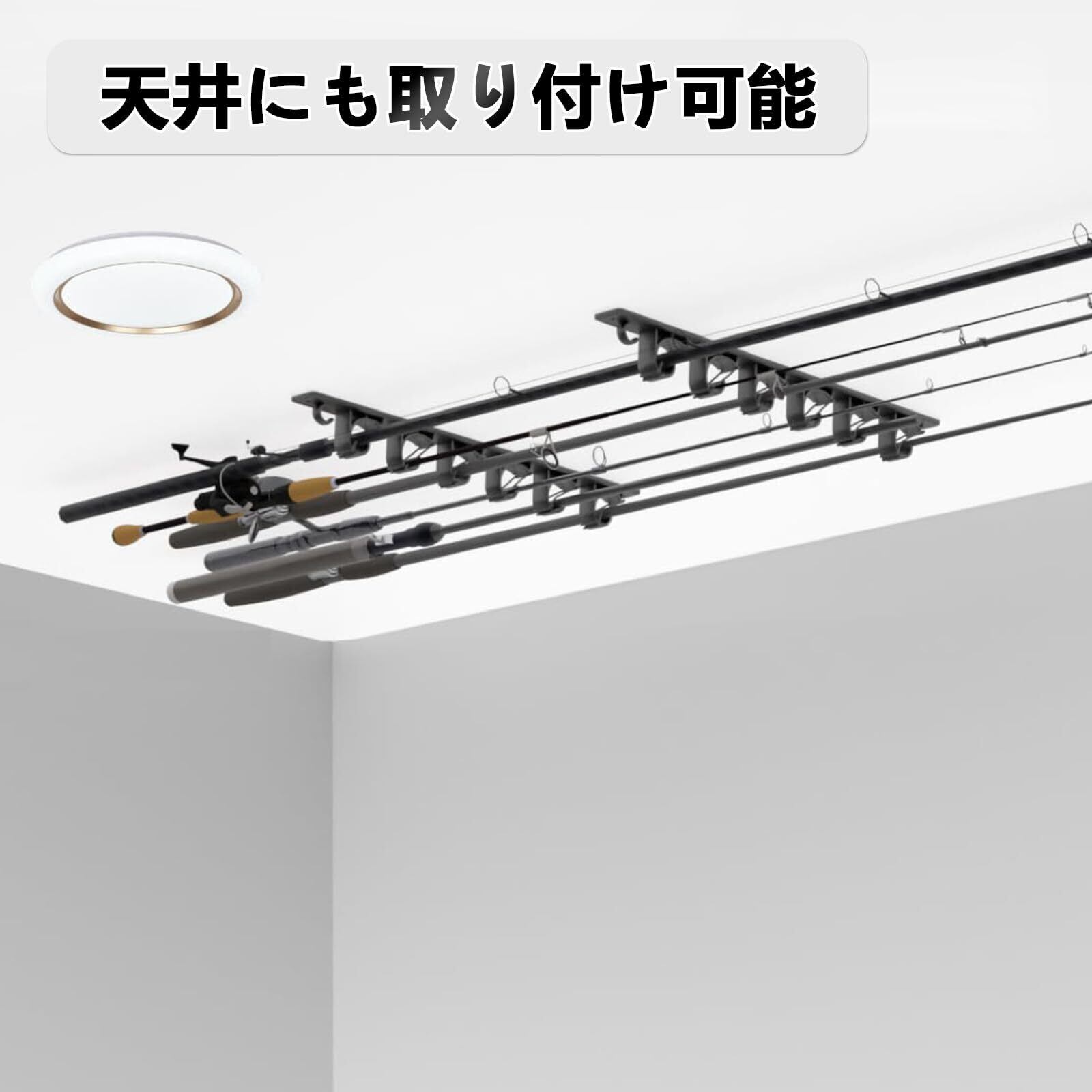 ロッドスタンド 壁掛け 釣り竿ラック 6本立て 天井や壁収納可能 壁面取り付け 釣り竿ディスプレイラッ ガレージ用釣り竿ホルダー フィッシングギア収納オーガナイザー 男性のプレゼント 誕生日プレゼント 竿/釣り道具/ロッド収納
