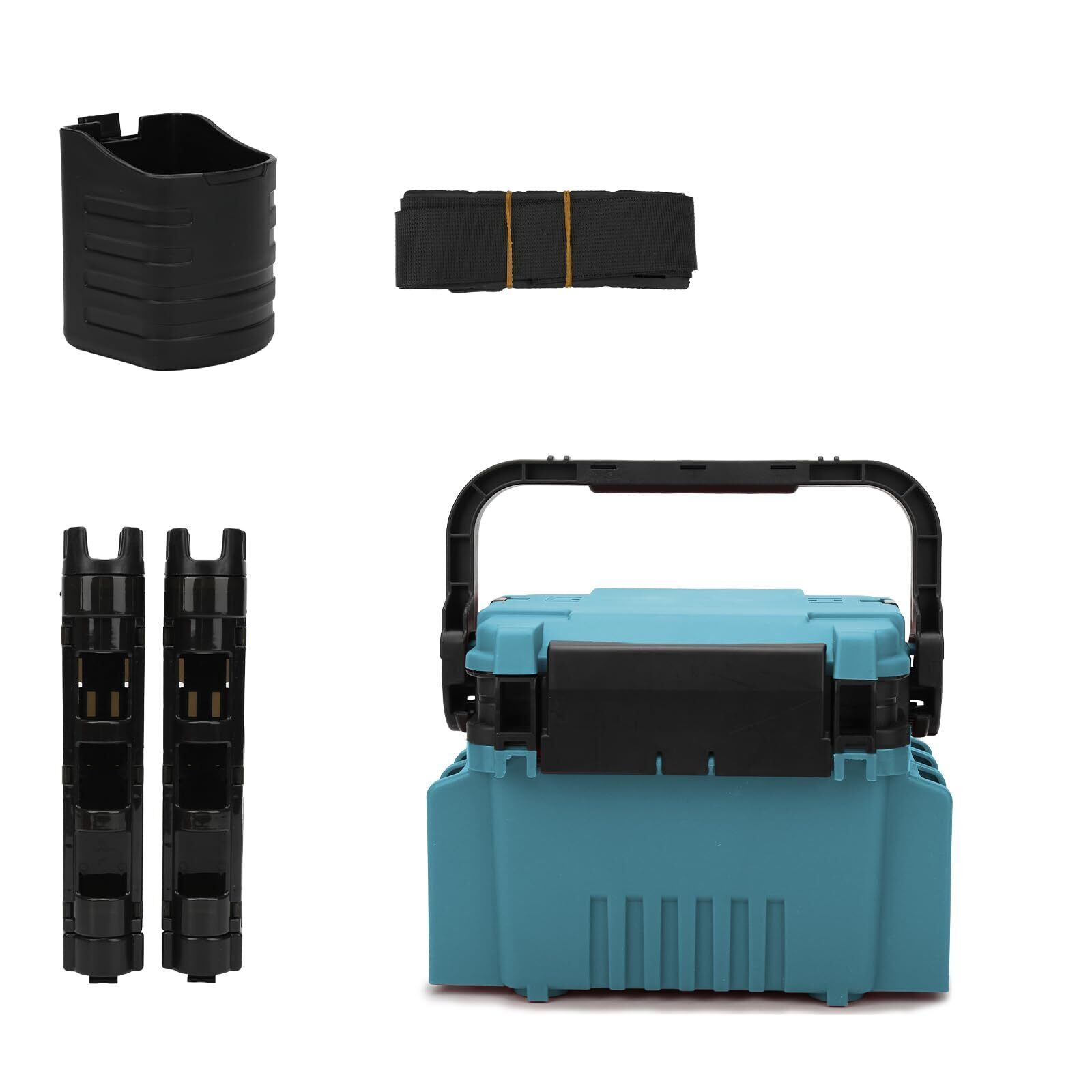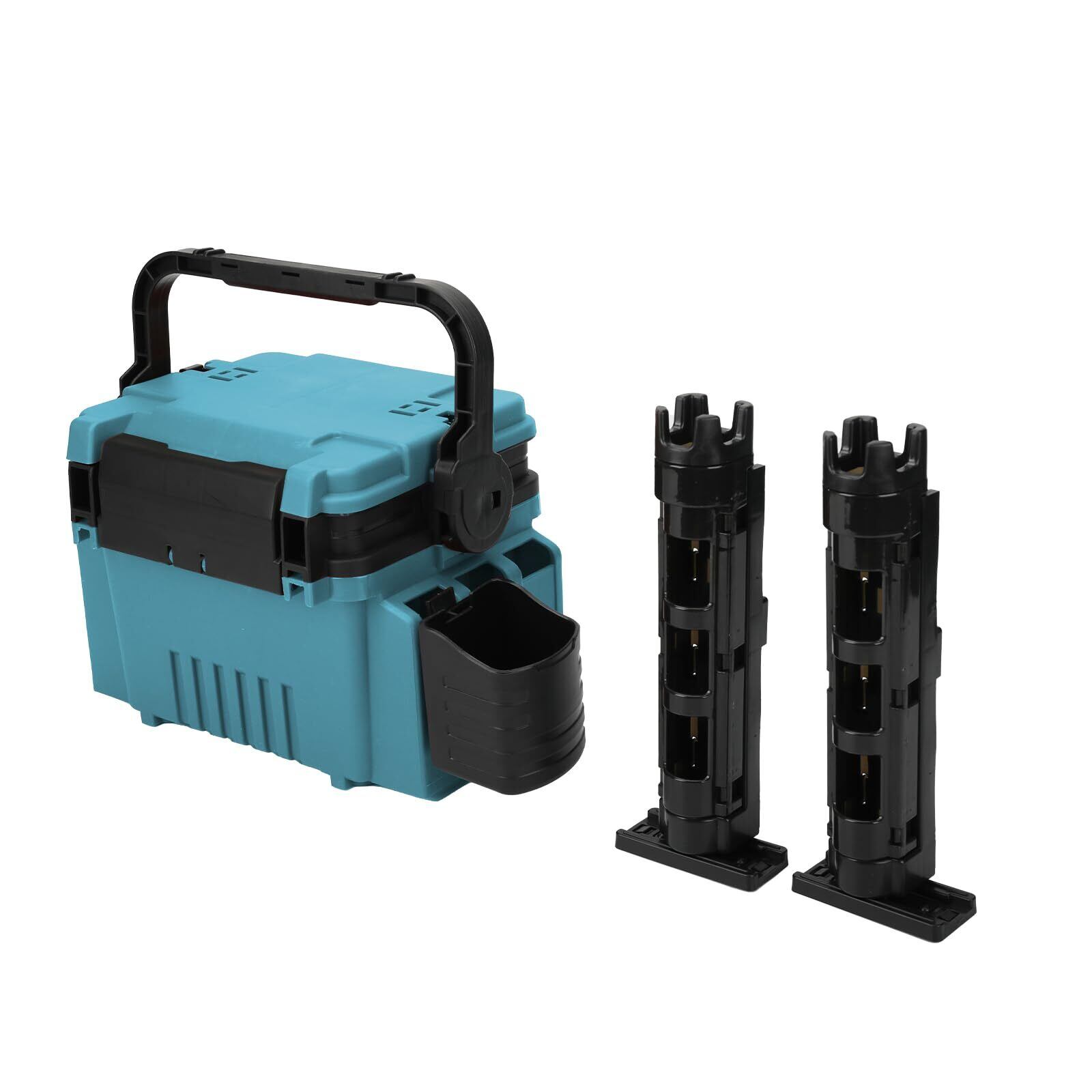 【釣り愛好家必見】Ceritica タックルボックス フィッシングケース 釣り用ケース 釣具BOX 大容量 収納力UP ロッドホルダー付き 軽量設計 持ち運び便利 屋外収納ボックス 椅子として使用可 カップホルダー+ポールスタンド付き (ブルー, M-31x23x23CM)