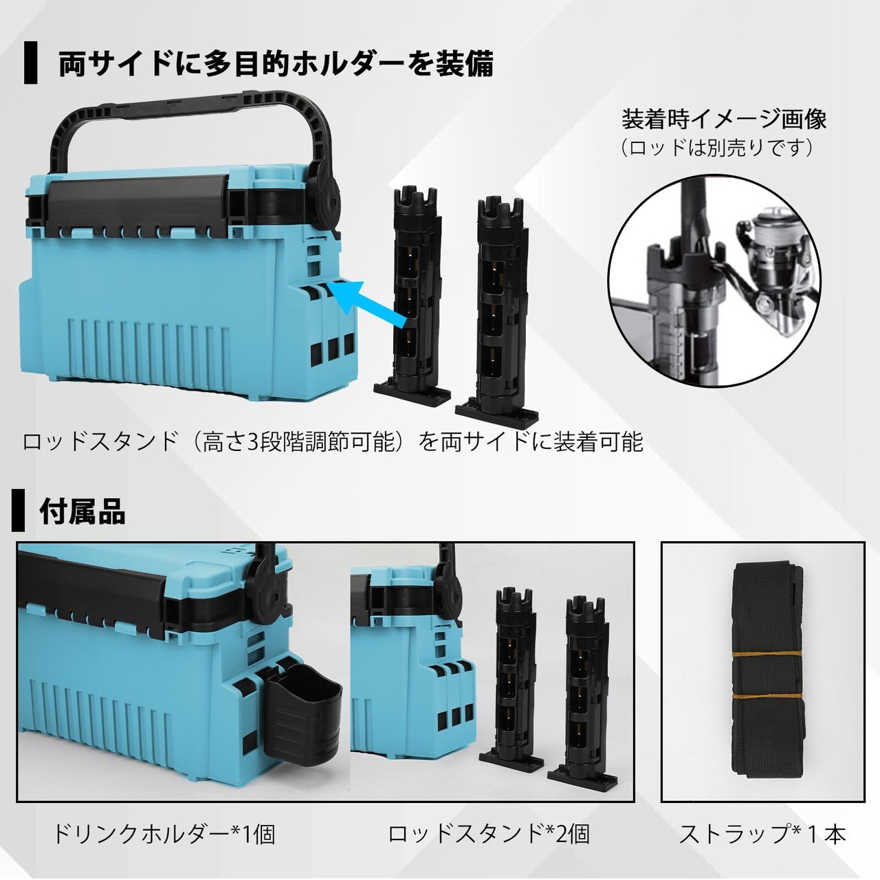 釣り竿をしっかり固定できるロッドホルダーが付属しており、複数のロッドを簡単に管理できます。釣りをしながらも、道具の取り扱いがしやすくなります。