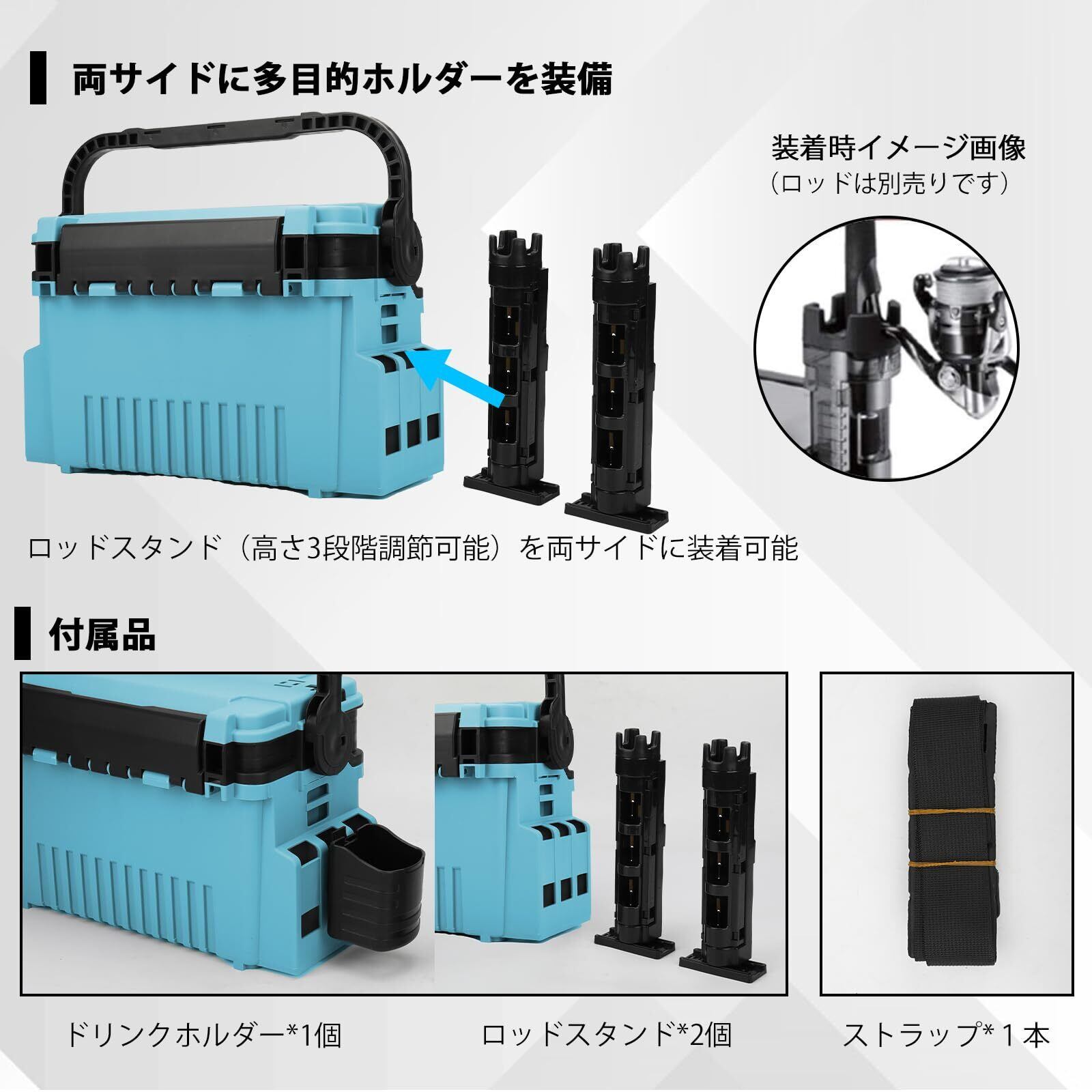 タックルボックスは椅子としても使用可能で、釣りの合間や待機中に座ることができ、快適さをプラスします。