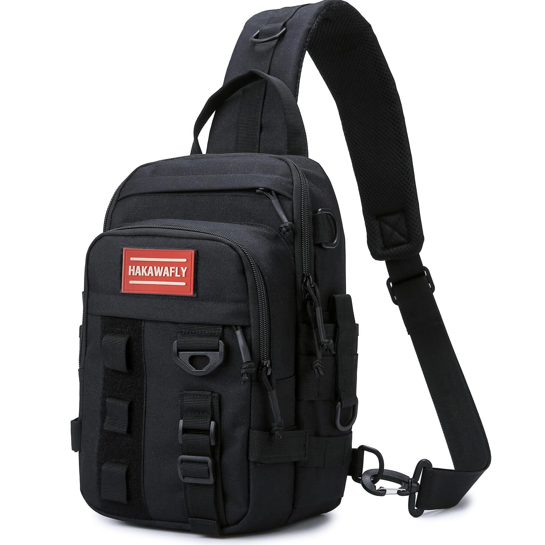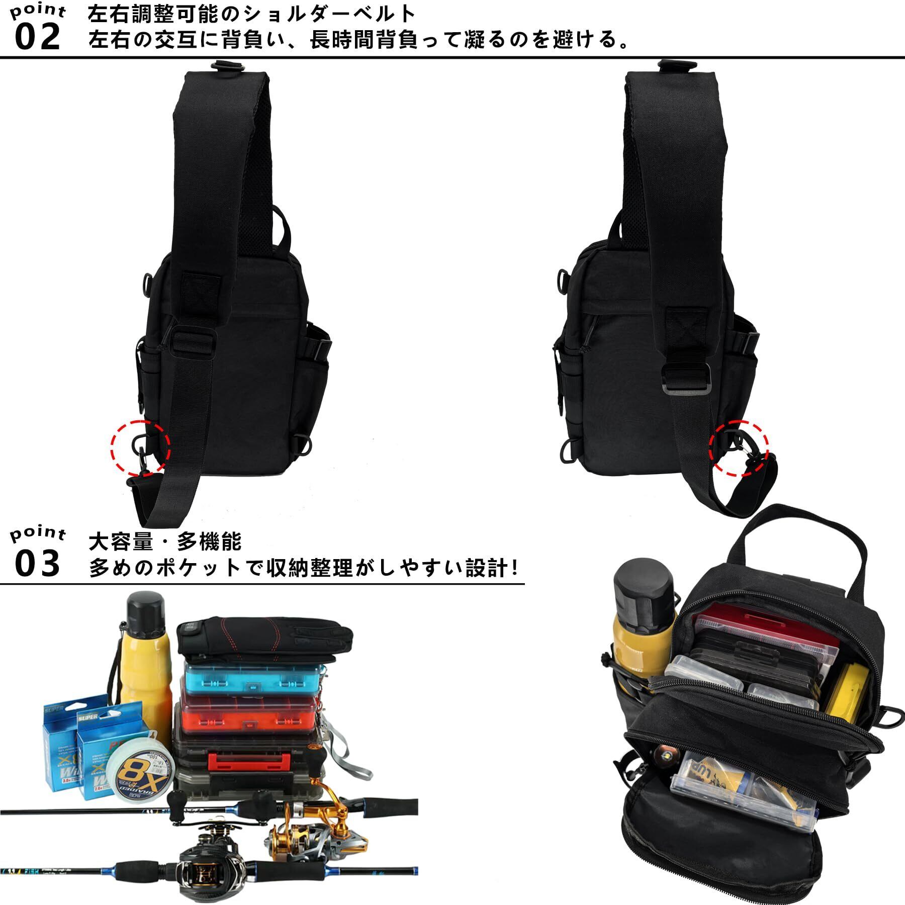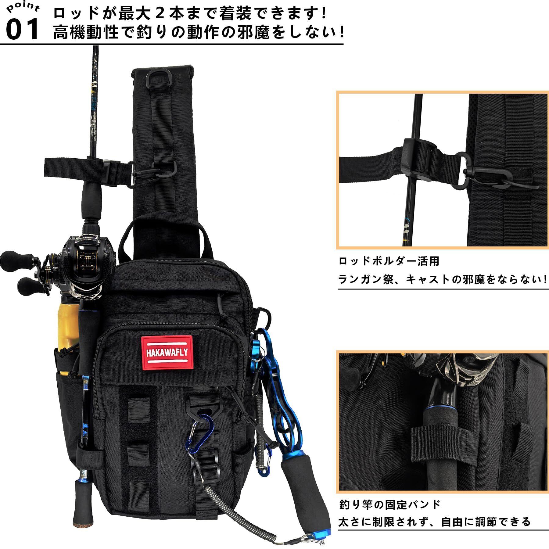 [HAKAWAFLY] フィッシングバッグ 釣り バッグ 撥水加工 左右可能なショルダーバッグ 多機能 ポーチ 釣り用 大容量 ボディバッグ 軽量 渓流 防水 斜め掛け 仕事用 散歩 バイク アウトドア(ブラック)