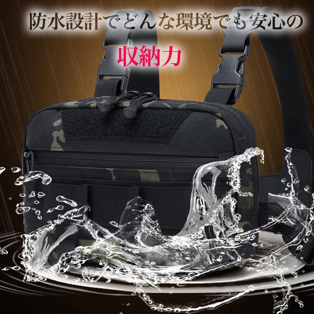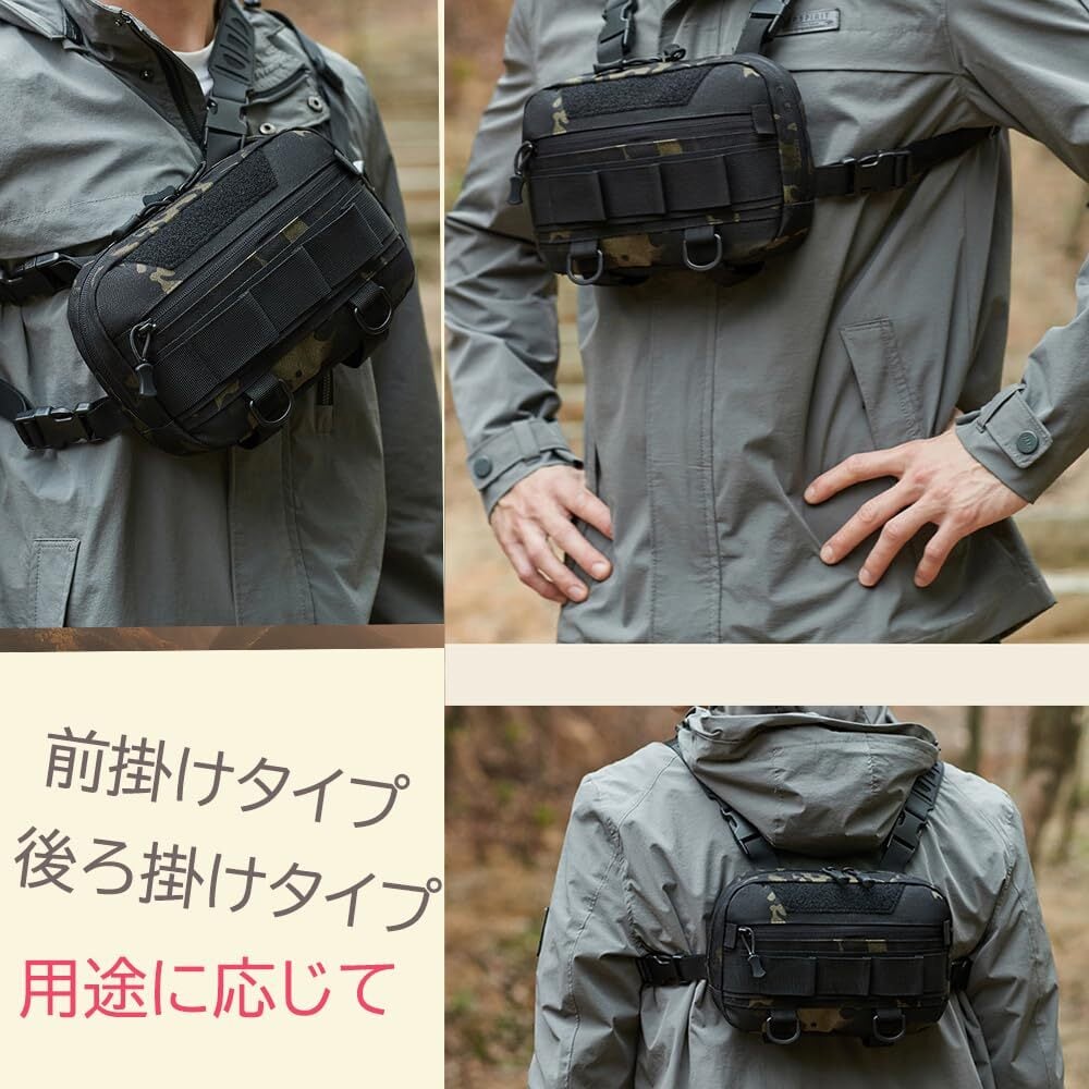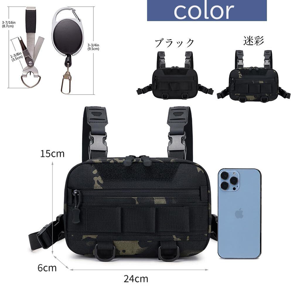 釣りバッグ フィッシングバッグ タックルバッグ チェストバッグ 登山 サイクリング タクティカル 多機能 ラインカッター付き 黒 迷彩 (ブラック)