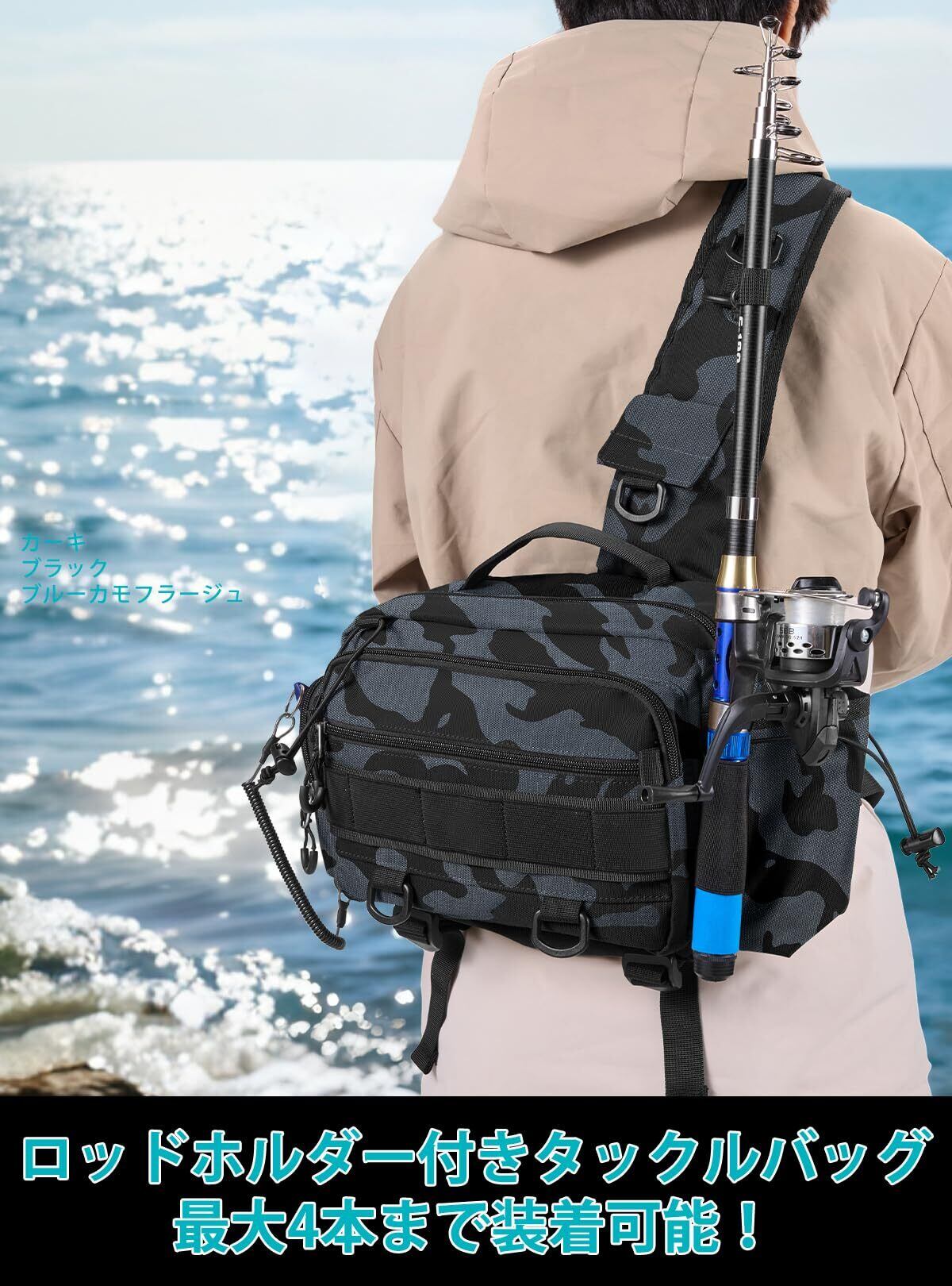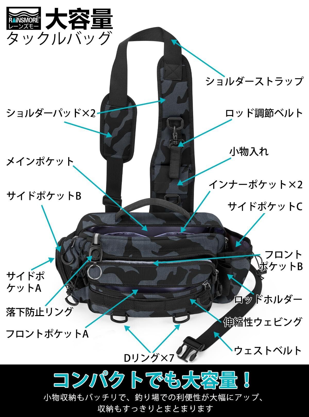 RAINSMORE フィッシングバッグ 大容量 タックルバッグ 9ポケット付き 調節可能 釣りバッグ ロッドホルダー付き ランガンバッグ 多機能 海釣り 渓流釣り ジギング エギング