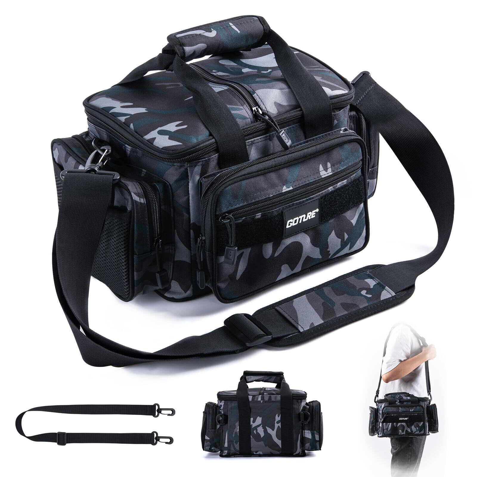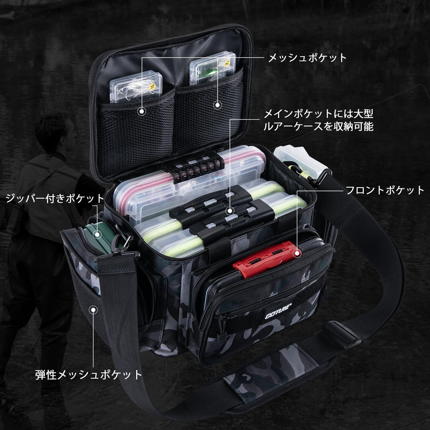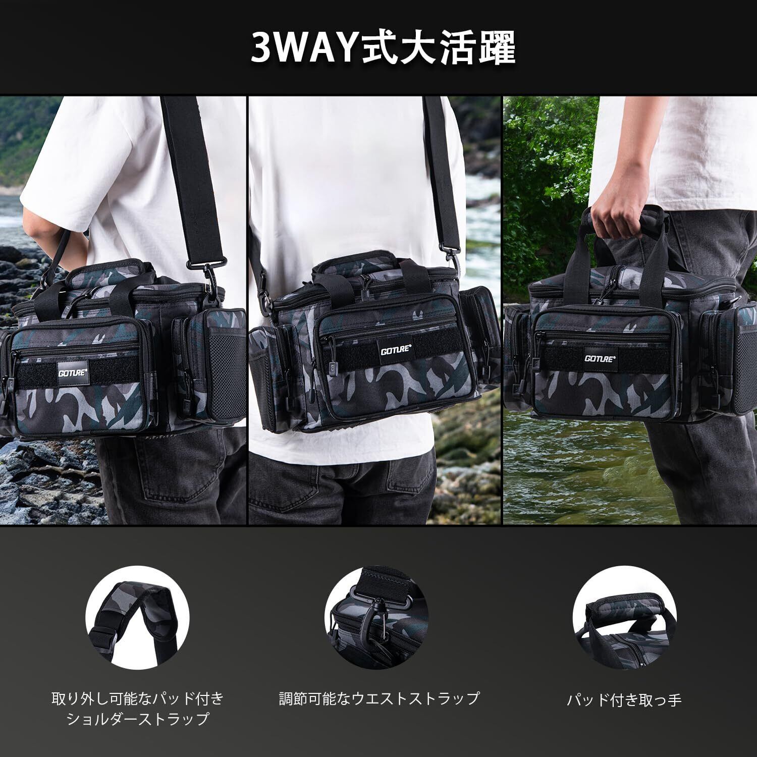 Goture フィッシングバッグ 釣りバッグ 3way ロッドベルト 防水 タックルバッグ ショルダー 釣り 多機能 大容量 ランガン リュックサック パック 撥水加工 釣り道具収納バッグ 登山 アウトドア 迷彩A