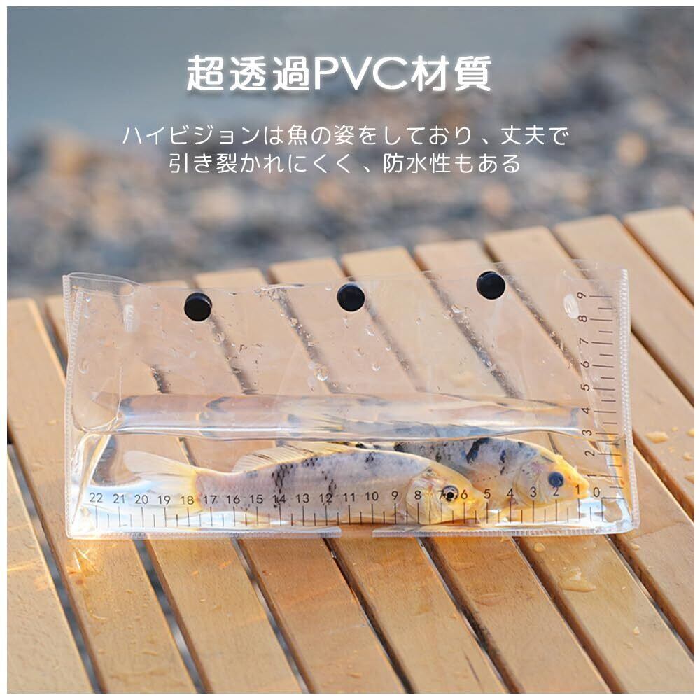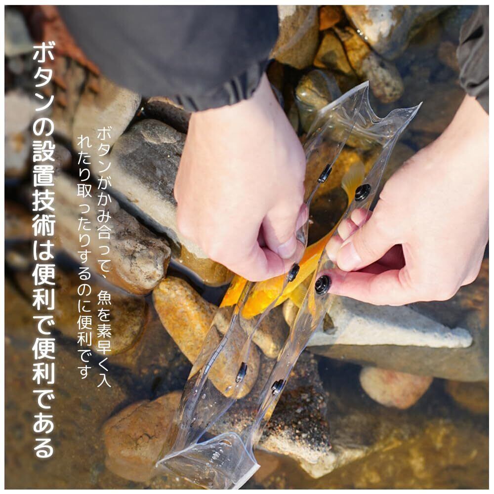 1.【メモリ付きスケールで魚のサイズ測定が簡単】フィッシュバッグにはクリアなスケールが印刷されており、マグロバックやルアー釣り中でも簡単に魚の長さを計測可能。別の計測ツールを持ち歩く手間がなく、効率的に釣果を記録できます。 2.【防水・耐久・なみだ袋仕様の高品質素材】丈夫な防水素材を使用し、なみだ袋のように破れにくく、長時間使用に耐える設計。アウトドア釣行でも安心して稚魚や金魚すくい用の魚を保護・観察できます。 3.【スナップデザインで開閉簡単・しっかり固定】使いやすいスナップボタンを採用し、魚の出し入れが素早く可能。ルアー釣りや稚魚 隔離ケースとしての使用時にも魚が逃げにくく、釣り ケースとしての収納力も備えています。 4.【折りたたみ可能で持ち運び便利な収納設計】コンパクトに折りたたみ可能で、収納袋付き。釣りバッグに入れても場所を取らず、マグロバックやアウトドア装備の一部として持ち運びにも最適です。 5.【観察・輸送・保管に適した多機能バッグ】透明なボディで魚の様子を観察しやすく、金魚すくいや釣りの一時保管・輸送用としても活躍。屋外のバックパッキングやハイキング中にも便利な魚の袋です。