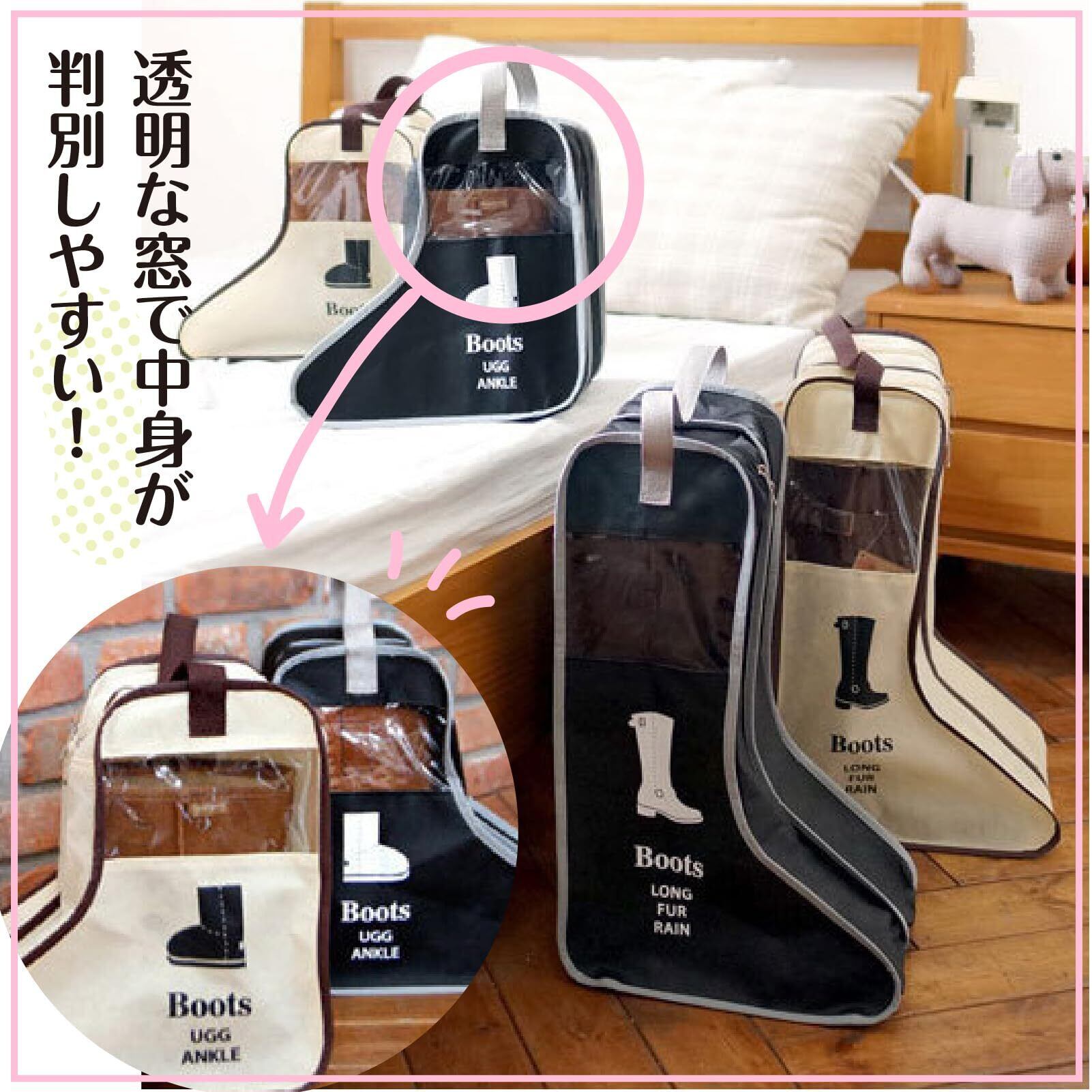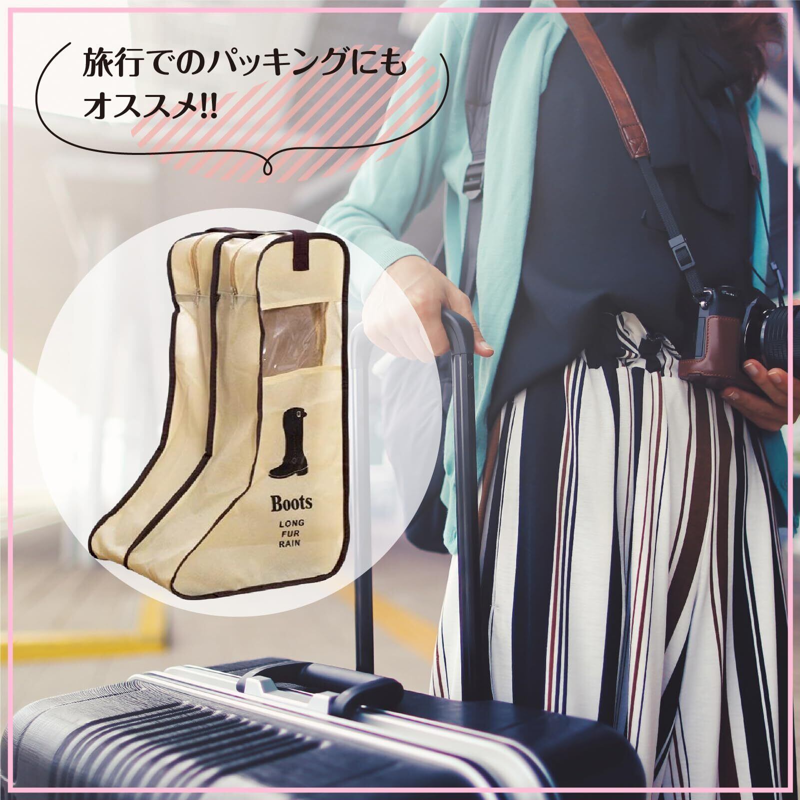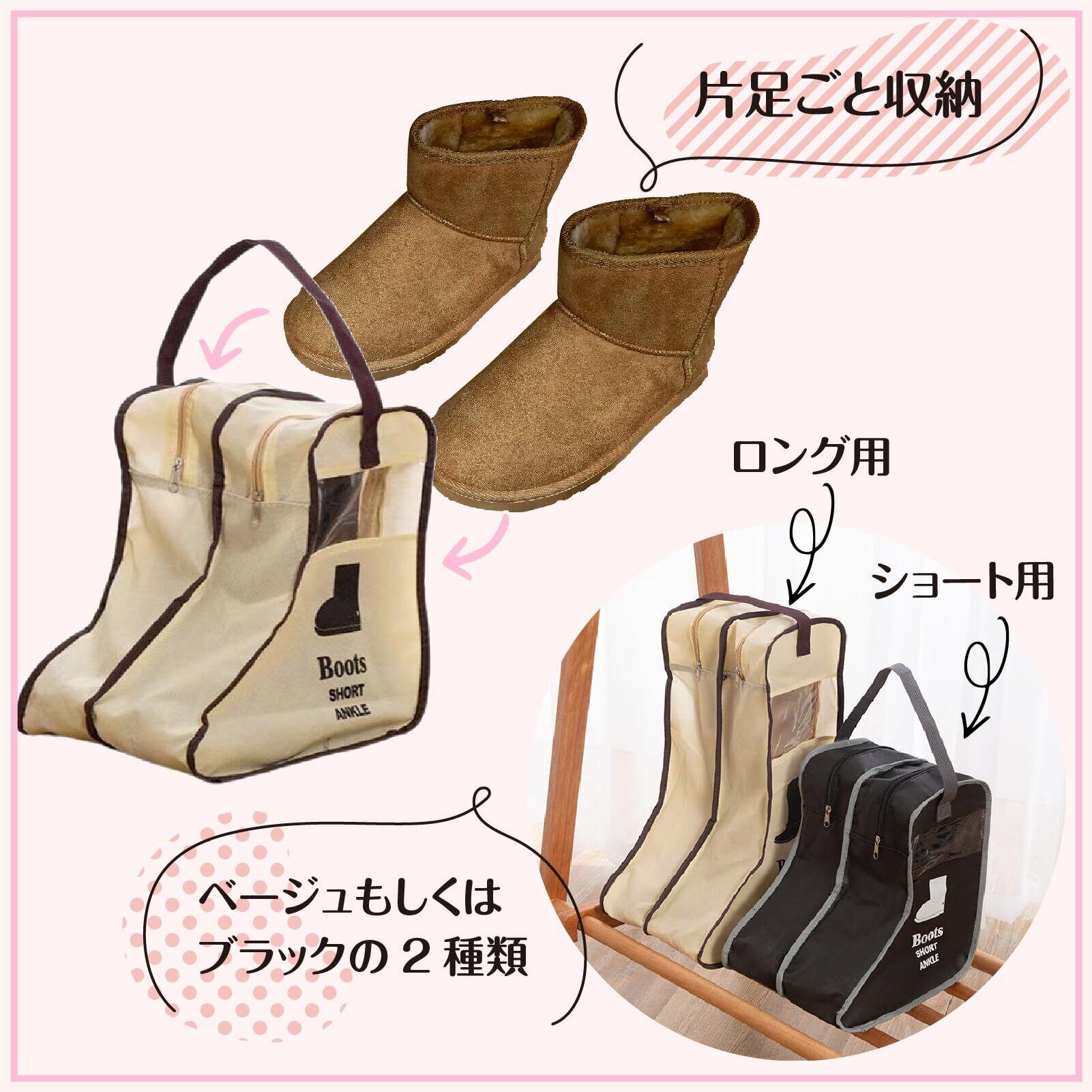 ZERONOWA ブーツ収納袋 ロング ショート シューズケース 不織布 収納 保管 汚れ 防止 (ショート/ベージュ2足)