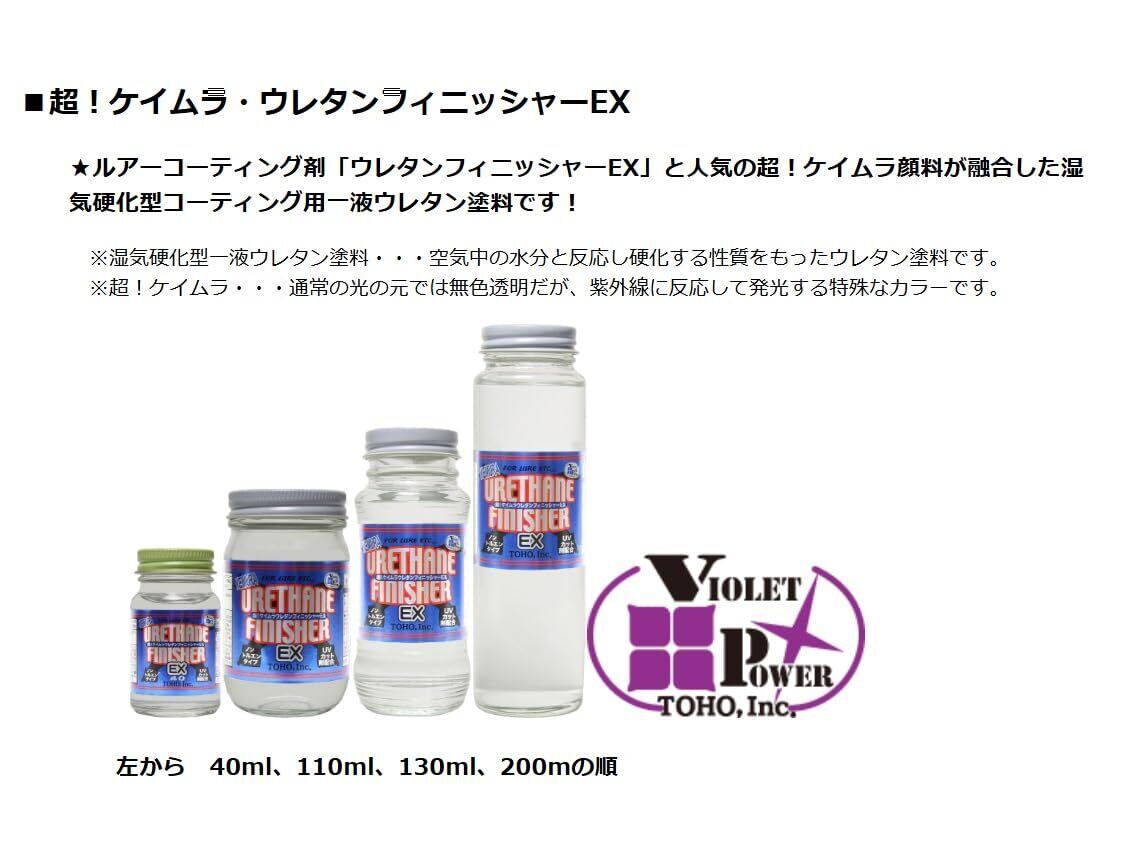 ルアーコーティング剤「ウレタンフィニッシャーEX」と人気の超!ケイムラ顔料が融合した湿気硬化型コーティング用一液ウレタン塗料です!
