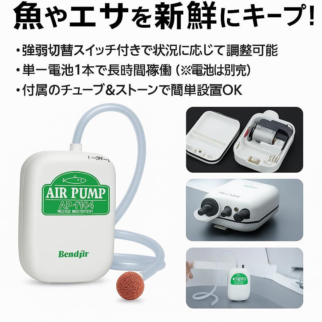 【活きエサや釣った魚を酸欠から守る安心設計】 本製品は、電池式のエアーポンプ(強弱切替機能付き)を標準装備しており、釣りの最中でも魚やエサを新鮮な状態でキープできます。アジやシラサエビなどの活きエサを使った泳がせ釣りや磯釣りに最適で、エアーポンプの動作音も静か。単1電池1本で長時間駆動し、電池交換も簡単です。エアーポンプはバケツ外側にチューブを通して設置するスタイル。ポケットを付けず、あえて本体をすっきり仕上げることで、見た目もスマートに。使用後の水洗いや拭き取りもラクで、お手入れが簡単です。釣り初心者からベテランまで安心して使える、容量約23Lの活かしバケツの決定版です。