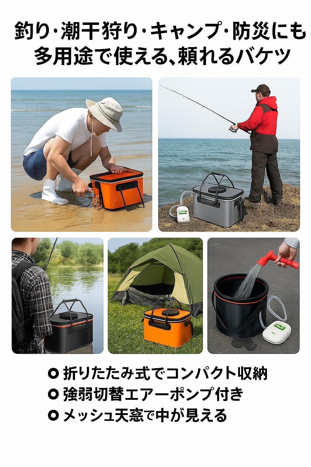 釣り 折りたたみ クーラーボックス エアーポンプ 付き バッカン バケツ 活かし 水汲み アウトドア