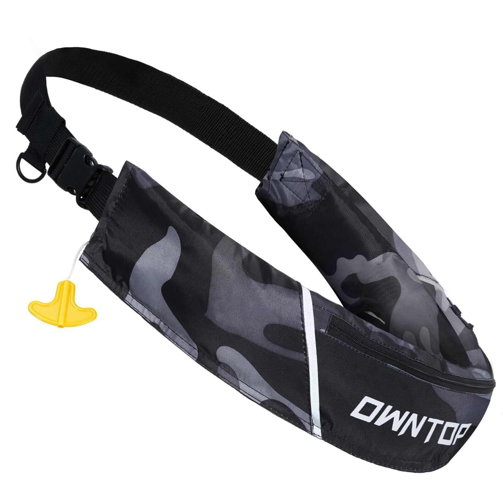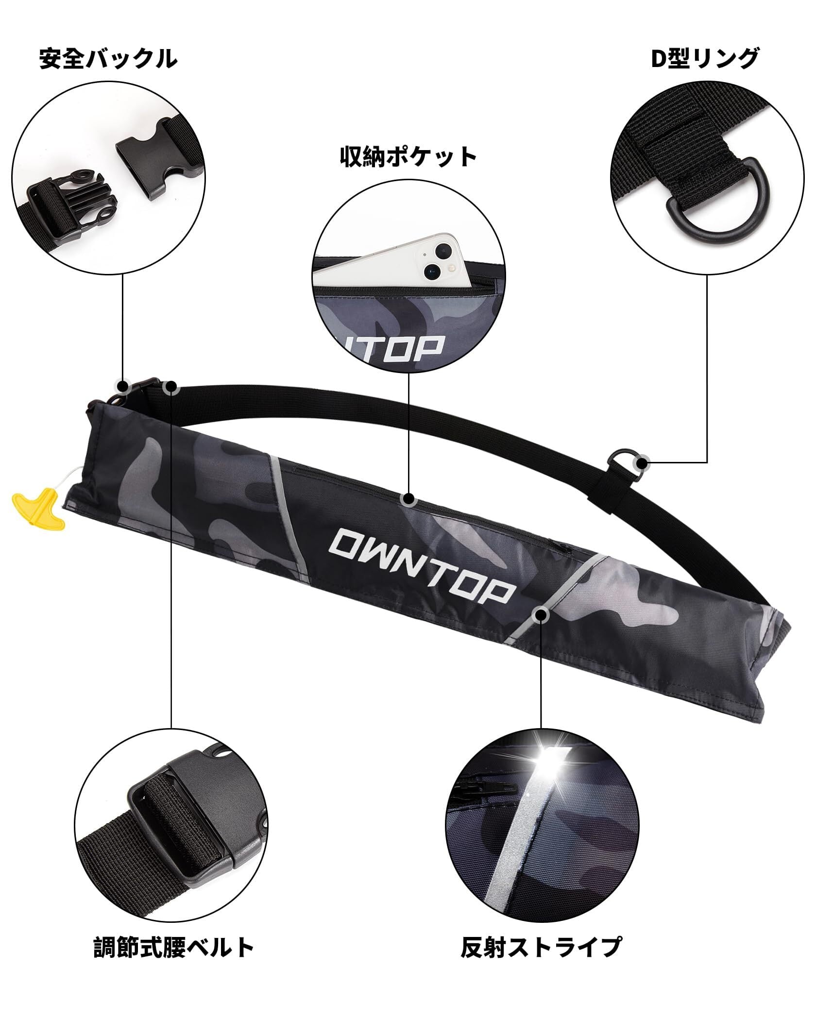 Owntop 自動膨張式ライフジャケット 腰巻き ポケット&ガスボンベ付き 自動・手動切り替え式 救命胴衣 大人用 軽量 耐久性 釣り用 カヤック ボート 水泳用
