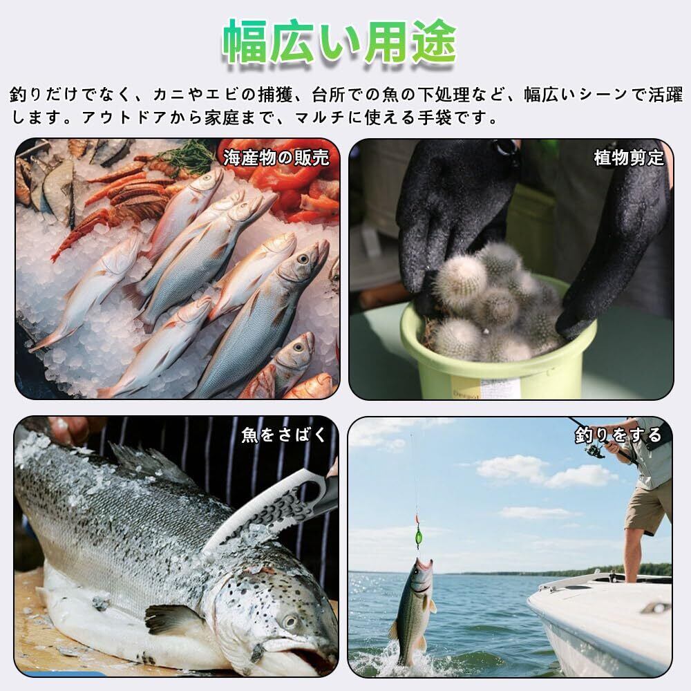 【幅広い用途】釣りだけでなく、カニやエビの捕獲、台所での魚の下処理など、幅広いシーンで活躍します。アウトドアから家庭まで、マルチに使える手袋です。