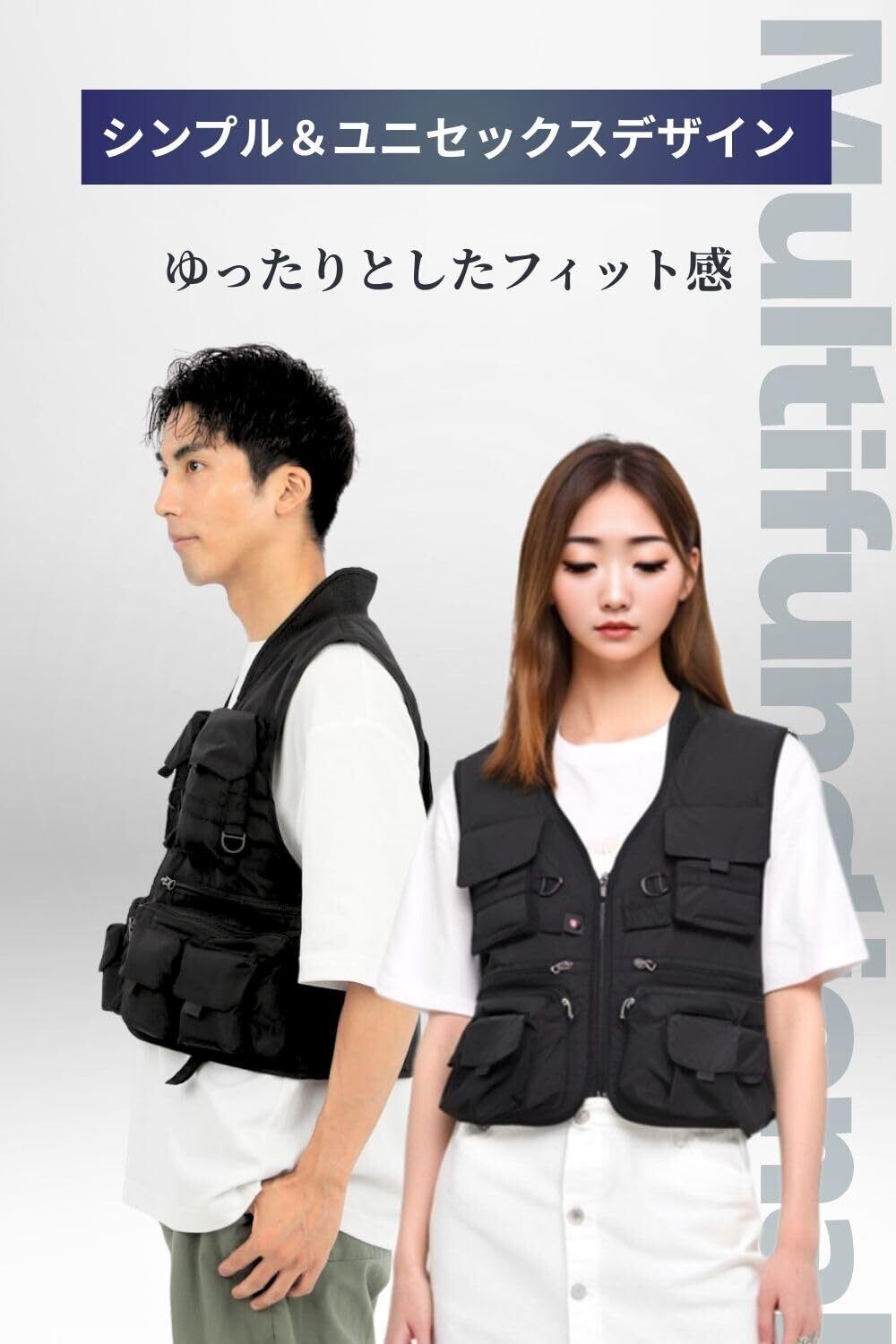 【どんなシーンでも活躍】:スタイリッシュなVネック・ノースリーブのゆったり設計で、男女問わず着こなせるユニセックスデザイン。アウトドア、釣り、写真撮影、DIY、日常使いまで、様々なシーンで自然に馴染み、実用性とスタイルを両立します。