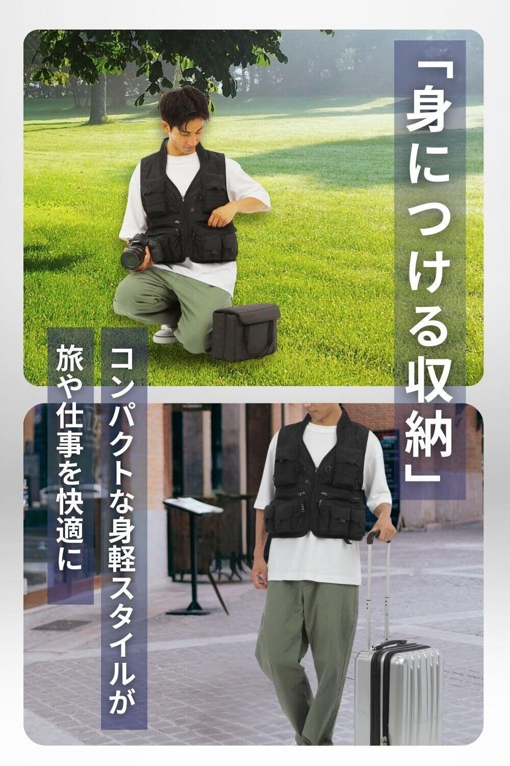 ノートPCも運べる、究極のハンズフリーベストが登場。背面の大型ポケットと、必要なモノがすぐ取り出せるフロントポケットで「探す時間」をゼロに。軽量かつ通気性抜群の素材で、長時間の着用もストレスフリーです。シンプルなデザインはアウトドアから普段使いまで幅広く活躍します。