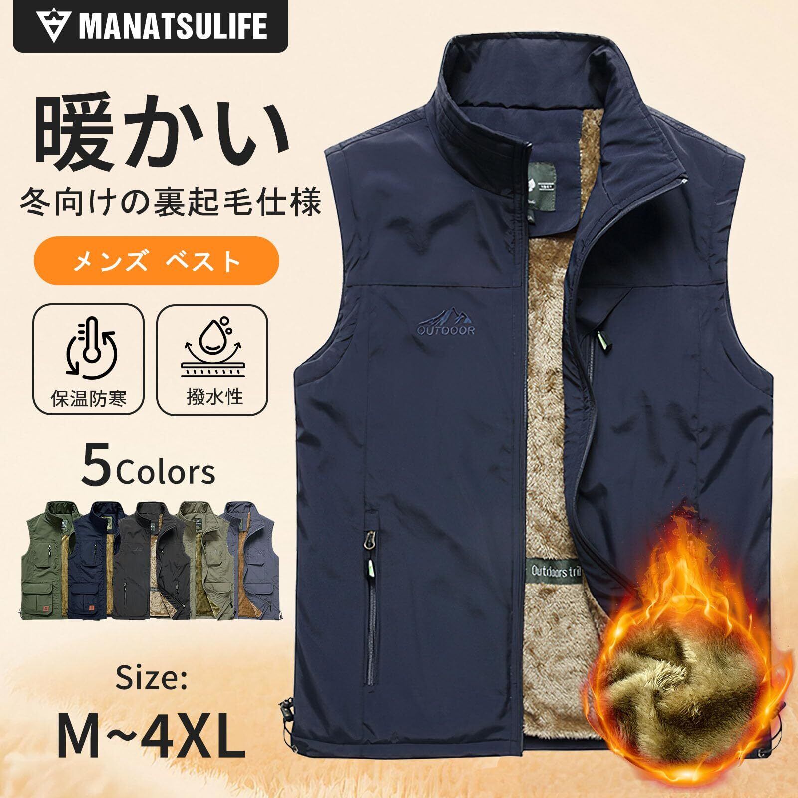 [Manatsulife] ベスト メンズ 多機能 防寒 保温 防風 裏起毛 撥水 軽量 暖かい カジュアル アウトドア カメラマン 秋 冬 撮影 登山 7882R-
