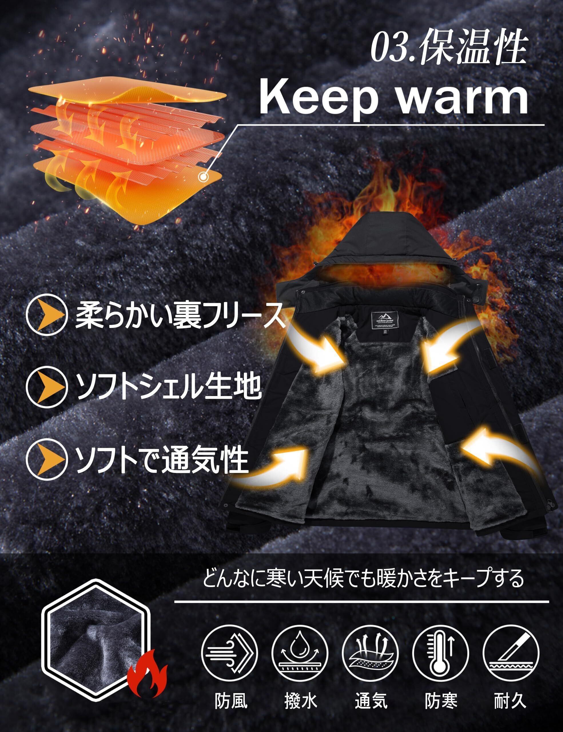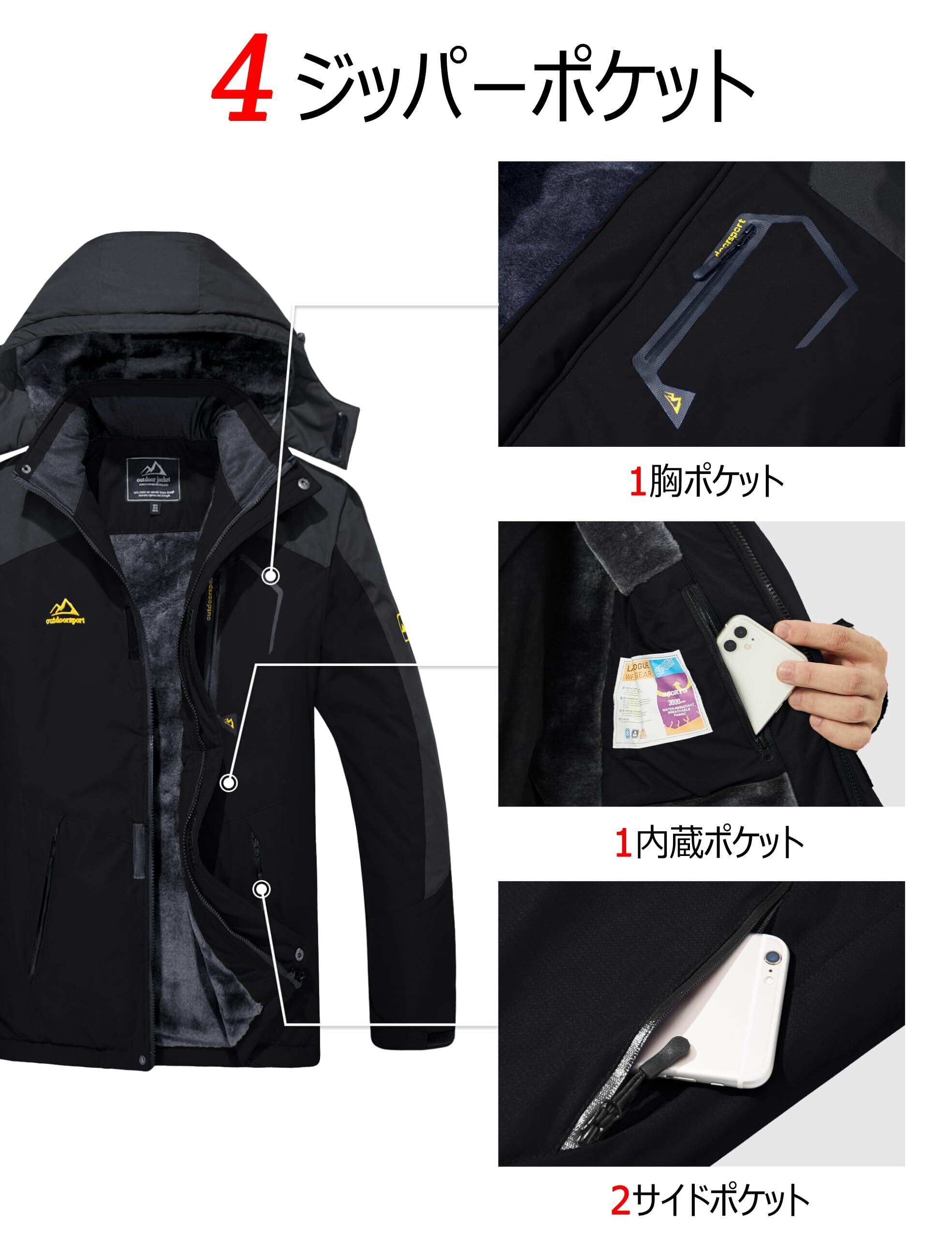 [MAGCOMSEN] アウトドアジャケット メンズ 裏起毛 多ポケット 機能性 マウンテンパーカー 防風 バイク 保温 登山ウェア ソフトシェル はっ水 ウインドブレーカー フード付き 取り外し可能
