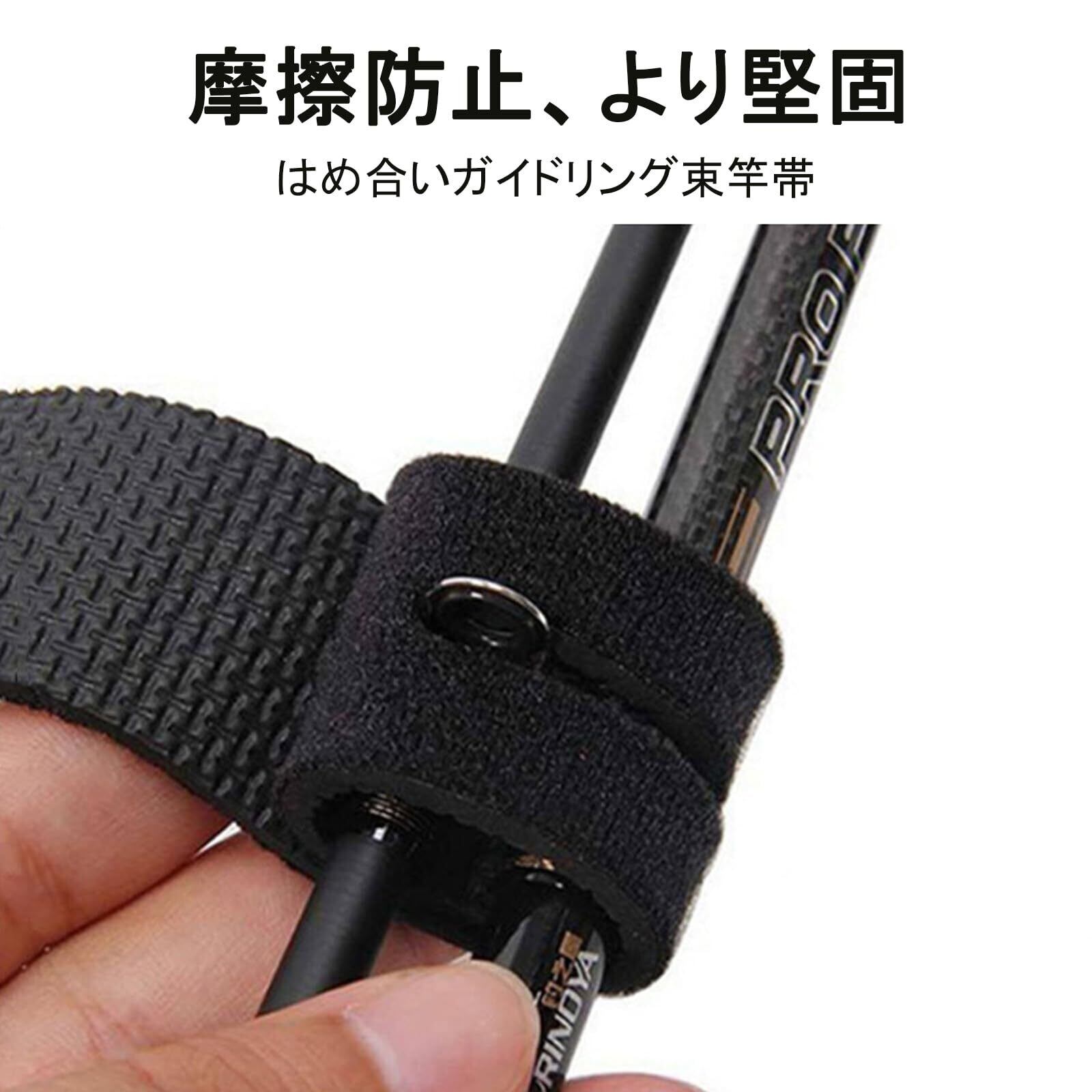 【1秒インストール】革新的な高速接着剤設計で、1枚ちぎると固定でき、初心者でも秒で手に入る!アジャストストラップ+スプリングバンドの組み合わせを調節でき、12-30 mmの異なる直径の釣り竿を自由にフィットさせ、複数の釣り竿を簡単に収納することができる。