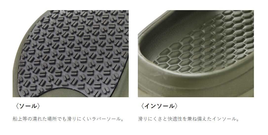 ●船上等の濡れた場所でも滑りにくいラバーソール。