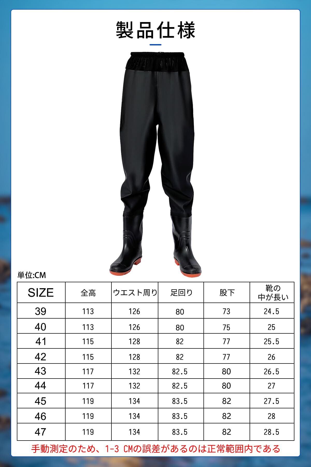 防水性能出色:ウェーダーは高品質の防水素材で作られ、川や海、渓流などの水辺での釣りや田植え作業に最適です。